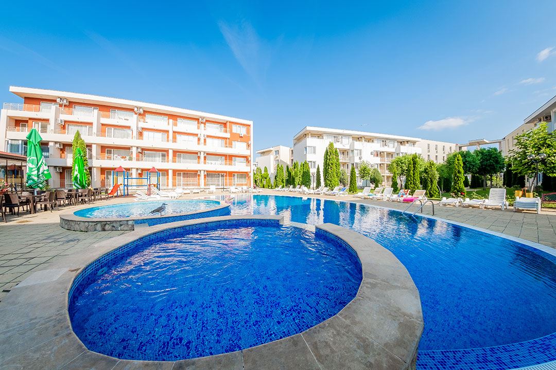 Комплекс впечатляет развитой инфраструктурой и отлично поддерживаемыми общими зонами. К услугам жильцов и гостей – открытые бассейны с водными горками, солнечные террасы и зоны отдыха, хорошо оборудованный фитнес-зал, спортивные площадки, уютные кафе, рестораны с разнообразной кухней, магазины и охраняемая парковка. Всё необходимое для комфортного отдыха находится под рукой.