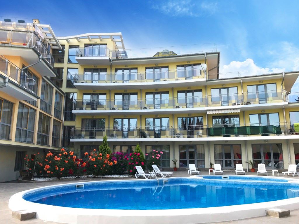 Комплекс предлагает: открытый сезонный бассейн, солнечную террасу, бар, озеленённый двор, бесплатный Wi-Fi в общих зонах и парковку. Возможна помощь с арендой авто и трансферами. Общие части поддерживаются в отличном состоянии, имеется лифт.