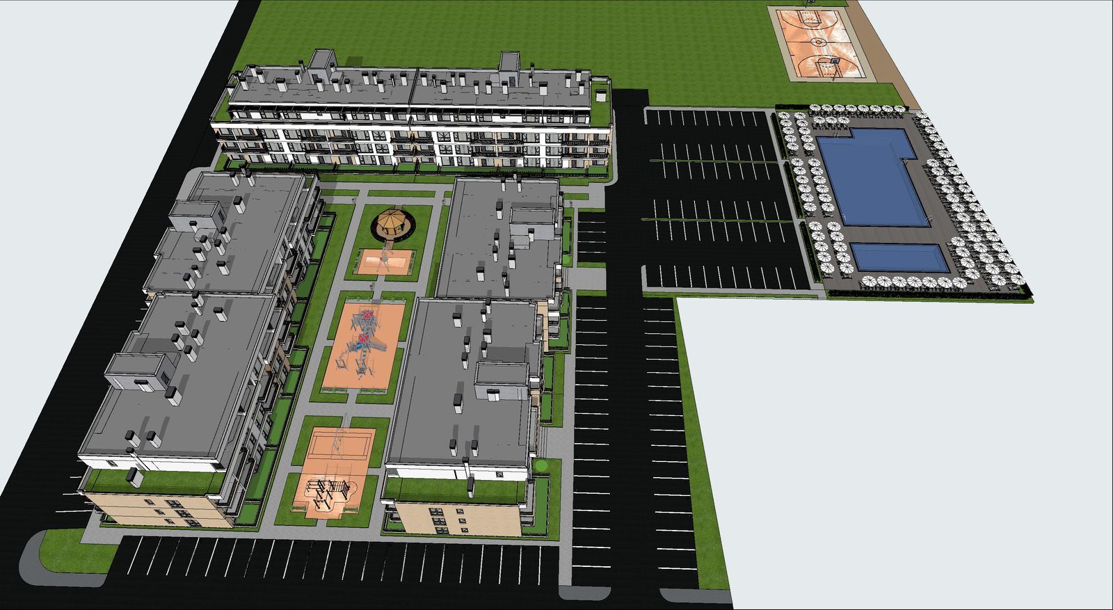 Комплекс предлагает современные и разнообразные удобства, созданные для активного и спокойного образа жизни. Жителям доступны два новых бассейна, детская площадка, беседки и зелёные зоны для отдыха, сочетающие развлечения и отдых для всех возрастов. Кроме того, предусмотрены четыре зарядные станции для электромобилей и 158 подземных парковочных мест, при этом обслуживание включает одно подземное парковочное место на квартиру, обеспечивая удобство и безопасность автомобилей владельцев.