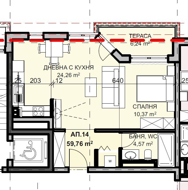 Представляем просторную двухкомнатную квартиру площадью 68,33 м², расположенную на втором этаже новостроящегося комплекса. Квартира предлагается в степени готовности «тапа» – штукатурка и стяжка, что позволяет новому владельцу закончить отделку по своему вкусу и стилю. Жильё практичное и функциональное, включает гостиную с кухонным блоком, ванную с туалетом, одну спальню, прихожую, кладовку и террасу, обеспечивая комфортное и удобное пространство для жизни или отдыха.