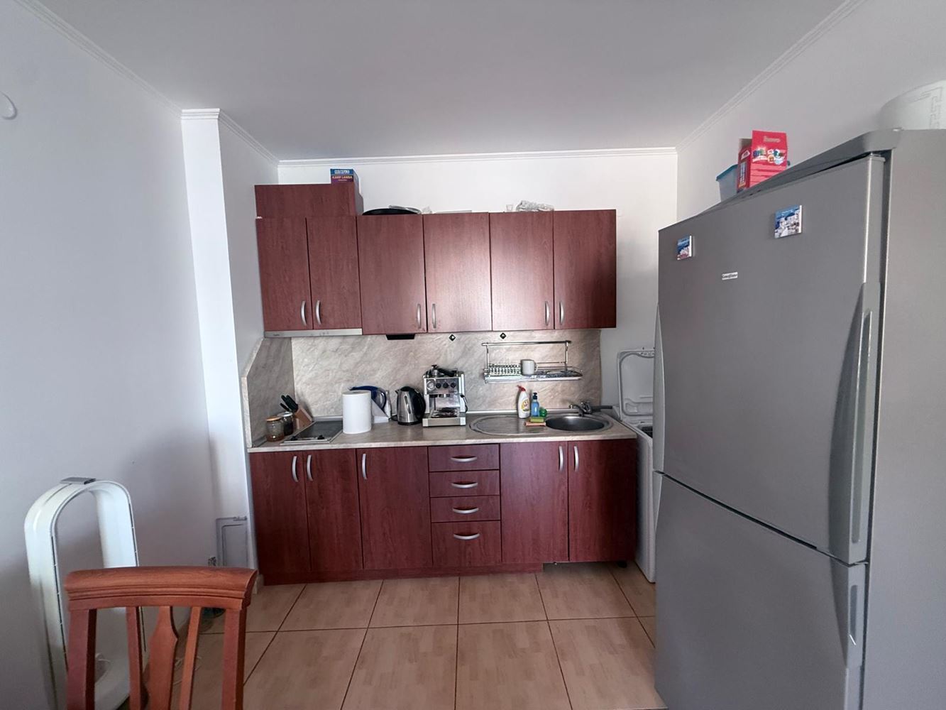 Расположение крайне удобное – в центре Солнечного берега, рядом с ресторанами, магазинами, супермаркетом, пешеходными улицами, рынком одежды и продуктов, пекарней, ночными клубами, казино, заведениями быстрого питания, аптекой, остановками общественного транспорта, медицинским центром, детским садом и школой. Всё необходимое находится в шаговой доступности, что обеспечивает удобство повседневной жизни и высокий потенциал для сдачи в аренду.