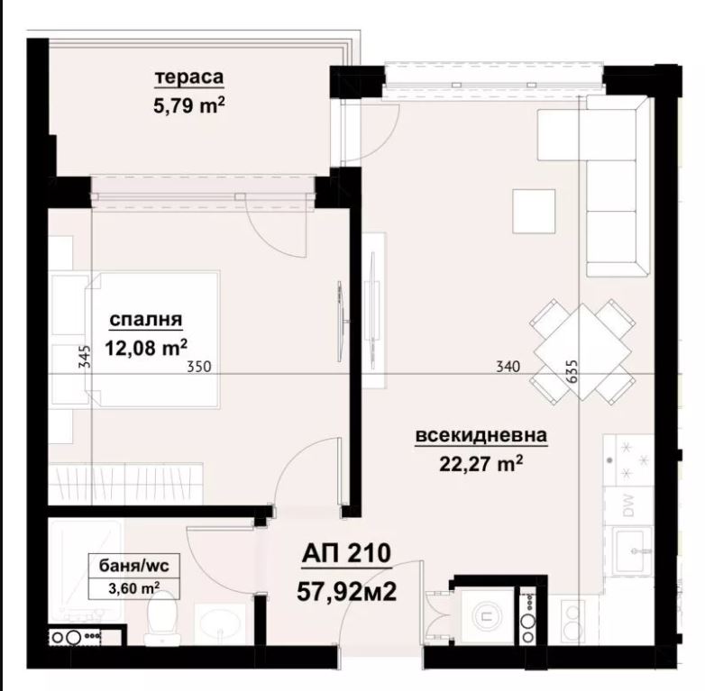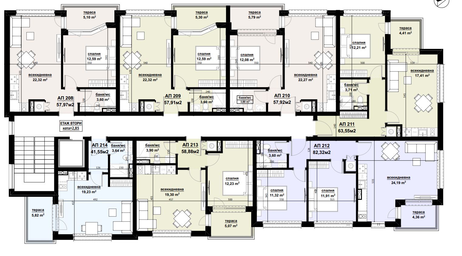 Двухкомнатная стандартная квартира общей площадью 57,92 м2 расположена на втором этаже нового жилого дома в Созополе. В семистах метрах от пляжной линии, в новом развивающемся районе города, возводится новый малоэтажный жилой дом по современным архитектурным и строительным стандартам. Квартиры с одной спальней имеет стандартную планировку. Можно купить гараж или место для парковки. Стильный и удобный проект, с видом на море и город. Здание расположено в месте с простым, минутным доступом к пляжу и центру города. Четыре этажа, красивый и уютный двор, огороженный от посторонних. Без сборов на обслуживание.