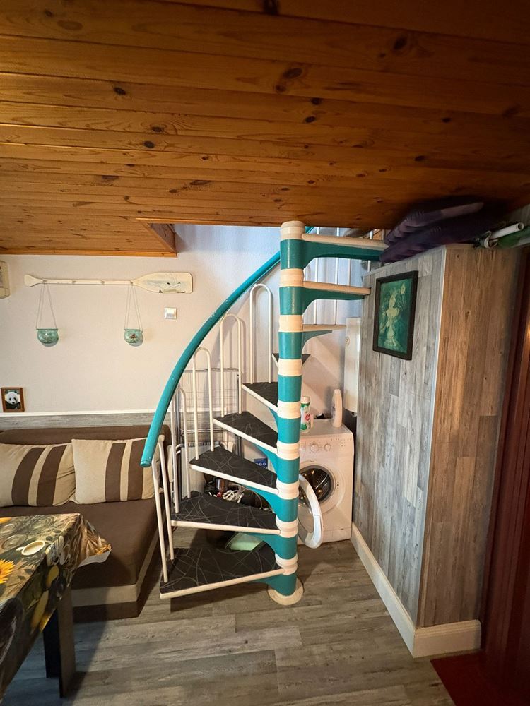- Первый уровень: светлая гостиная с кухонным боксом, ванная комната с туалетом и балкон с чудесной морской панорамой – отличное место для утреннего кофе и закатов.