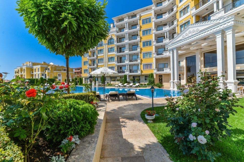 Организована удобная и безопасная парковка – подземный паркинг (есть возможность покупки места) и бесплатная стоянка вдоль улицы. Доступ к квартирам обеспечен лифтом и широкими общими помещениями. Комплекс находится всего в 15 минутах от яхтенного порта «Марина Диневи», в одном из самых престижных районов Святого Власа с развитой инфраструктурой.