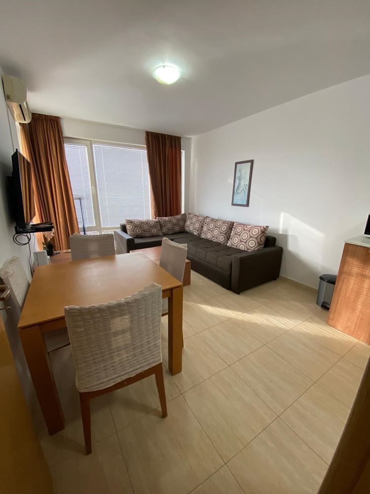 Предлагаем к продаже просторную и функциональную квартиру с одной спальней, расположенную на четвёртом этаже современного курортного комплекса, находящегося на второй линии от моря в Солнечном Береге. Общая площадь недвижимости составляет 60 м², сочетая комфорт, удобную планировку и исключительно привлекательное расположение, подходящее как для отдыха, так и для инвестиции с высоким арендным потенциалом.
