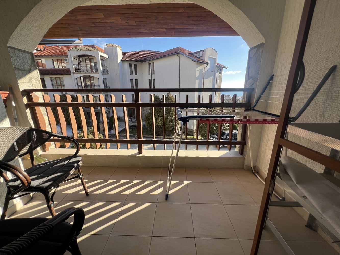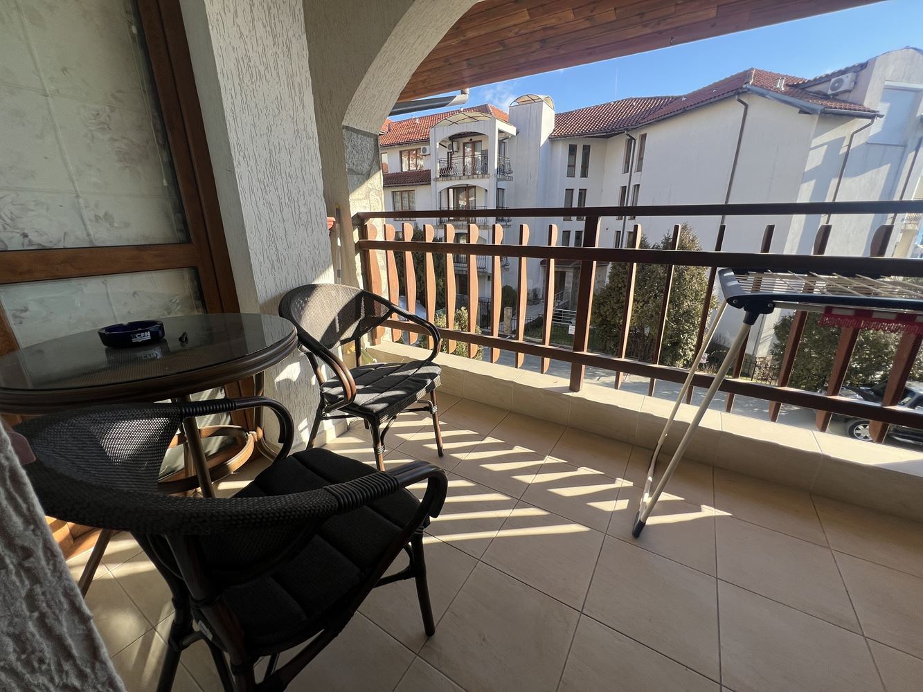 Представляем вам просторный и стильно меблированный апартамент с двумя спальнями, расположенный в одном из самых престижных комплексов в Свети Влас, всего в 300 метрах от моря и известной яхтенной пристани. Локация сочетает спокойствие морского курорта с близостью ко всем удобствам, которые делают жизнь у моря комфортной и приятной. Комплекс впечатляет своей уникальной архитектурой, вдохновленной традиционным болгарским стилем, где натуральный камень, деревянные элементы и классическая красная черепичная крыша гармонично сочетаются и создают атмосферу уюта и элегантности. Вокруг зданий оформлены богато озелененные сады, прогулочные аллеи и многочисленные зоны отдыха, которые создают ощущение спокойствия и курортного комфорта.