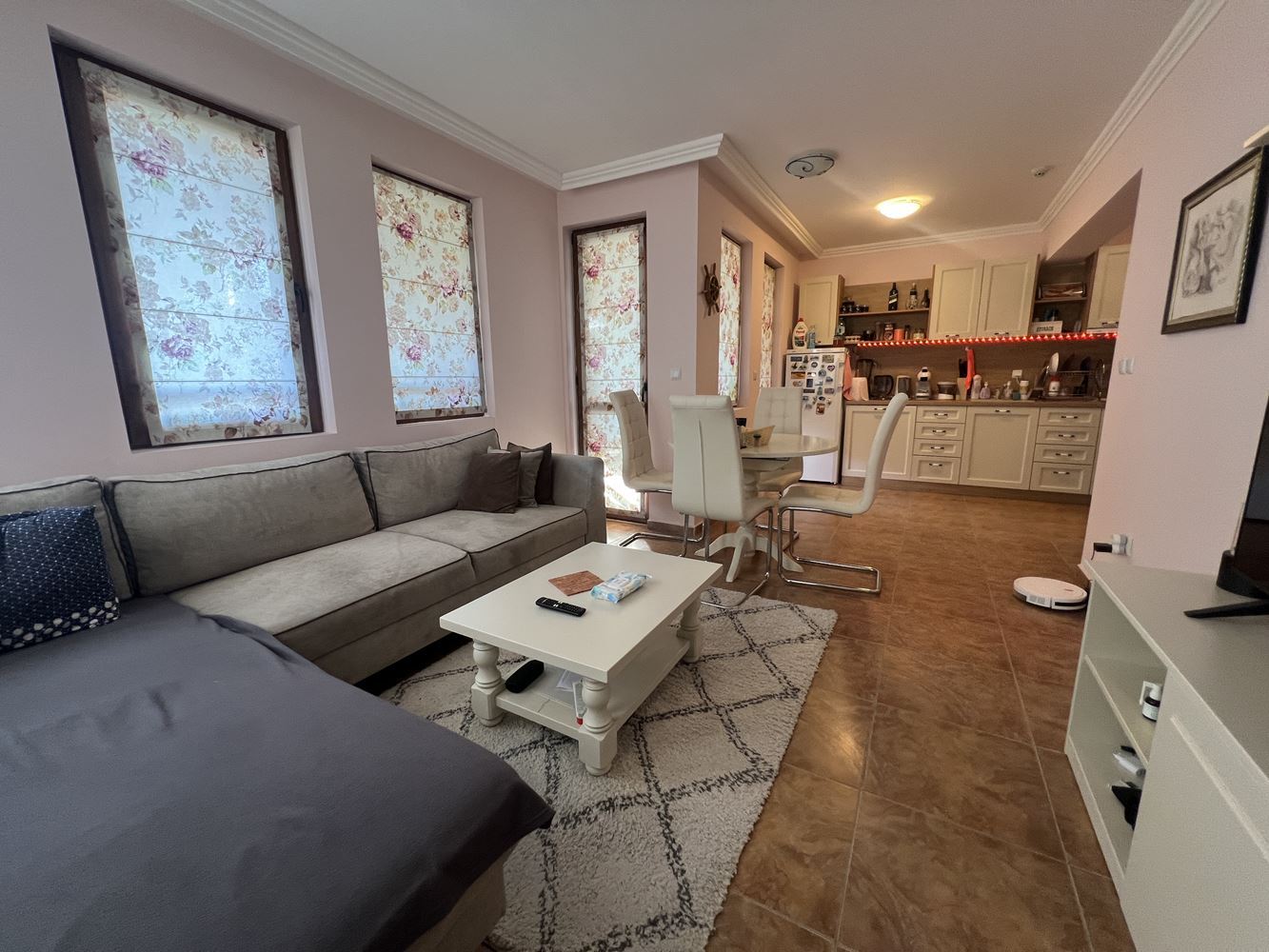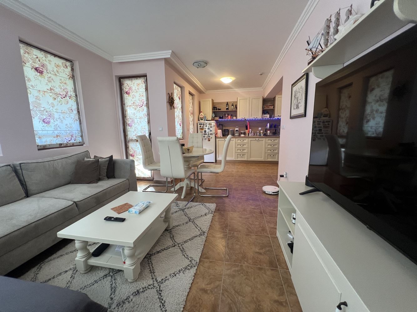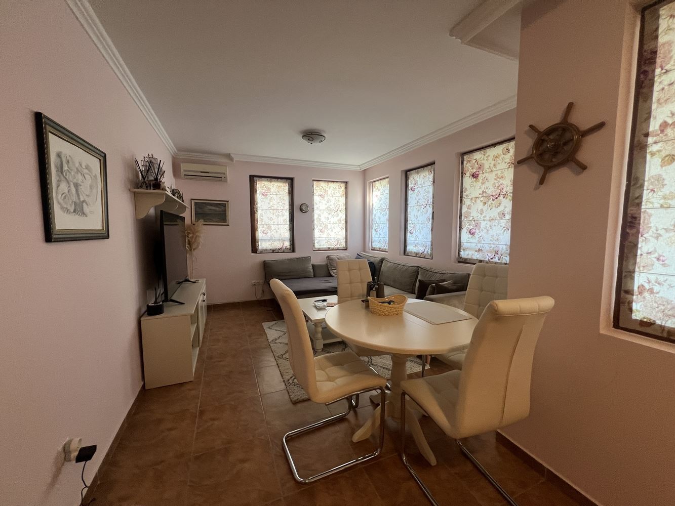 Жилье имеет площадь 80 м² и находится на втором этаже. Планировка функциональная и удобная, что делает его подходящим как для круглогодичного проживания, так и для отдыха у моря. Апартамент располагает светлой и просторной гостиной с кухней, которая создает уютную атмосферу для отдыха и семейных моментов.
