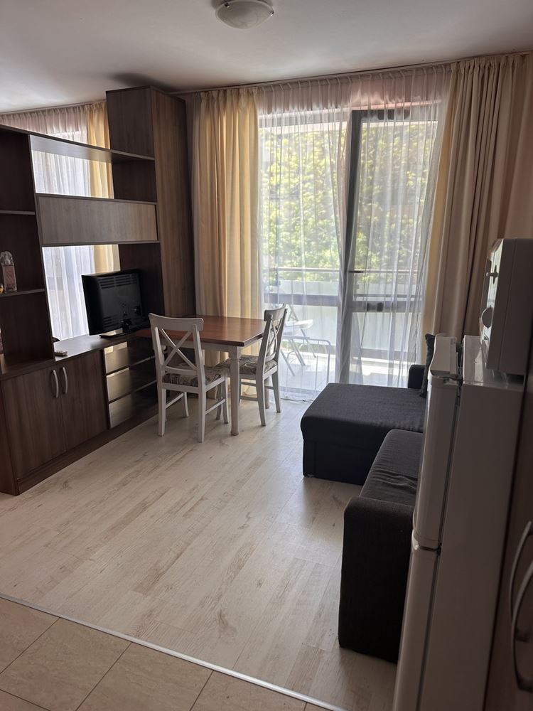 Продается уютная студия в популярном курортном комплексе Солнечный берег. 40 м² этой недвижимости - идеальный дом как для летнего отдыха, так и для постоянного проживания. Студия расположена всего в 400 метрах от сказочных пляжей Черного моря. Практичная планировка включает в себя прихожую, просторную гостиную с кухонным уголком и зоной отдыха, современную ванную комнату с туалетом и удобную террасу, с которой можно наслаждаться свежим морским воздухом. В здании есть лифт, который обеспечивает легкий доступ в квартиру.