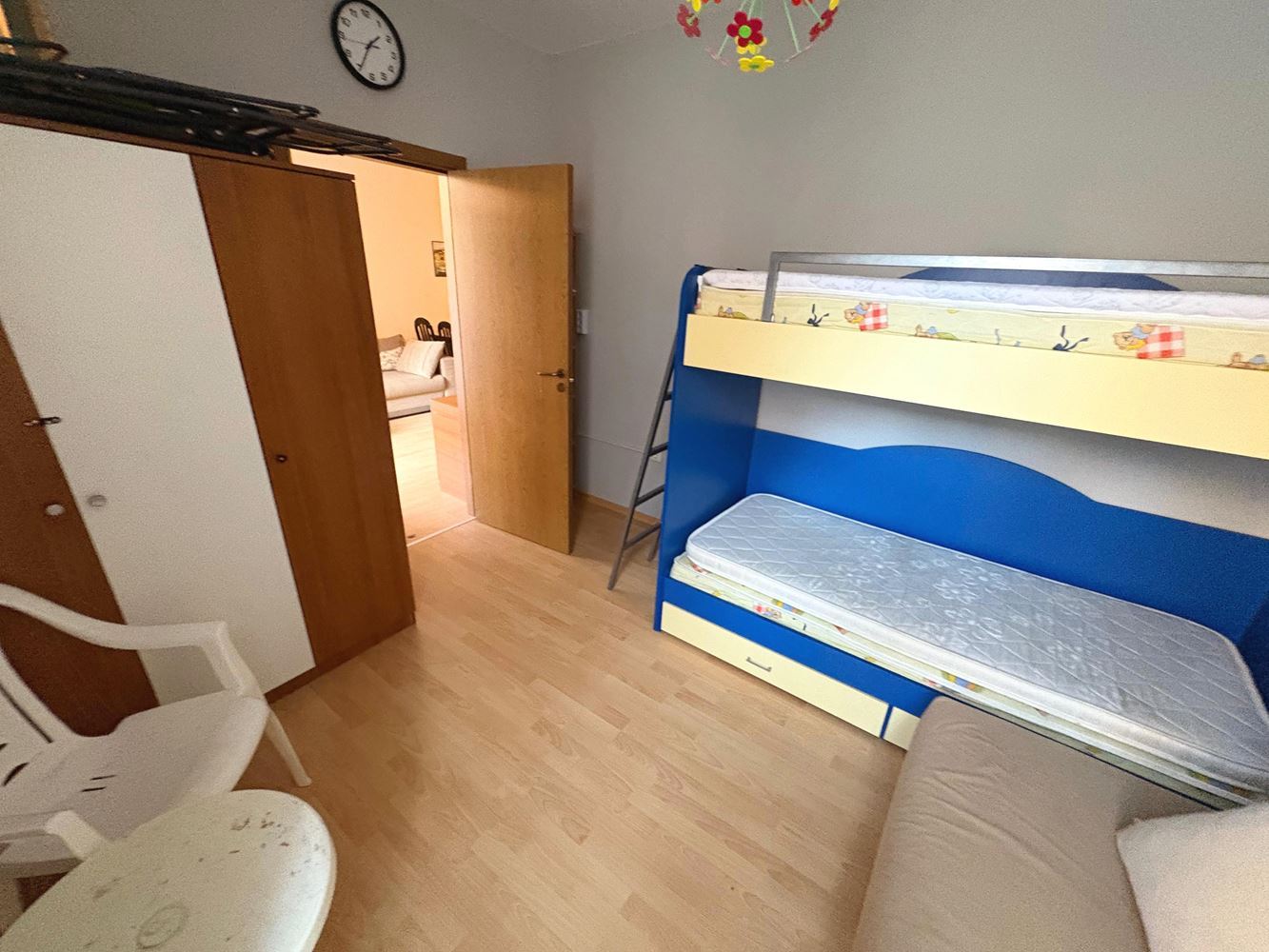Жильё состоит из просторной дневной зоны с обособленным местом для кухонного уголка, которая создаёт естественное пространство для семейных моментов и отдыха. Квартира располагает двумя отдельными спальнями, обеспечивающими комфорт и уединение, ванной комнатой с туалетом, а также светлым балконом, с которого можно наслаждаться свежим воздухом и приятным видом на внутреннюю территорию комплекса. Объект продаётся полностью меблированным и оборудованным, готовым к немедленному использованию без необходимости дополнительных вложений.