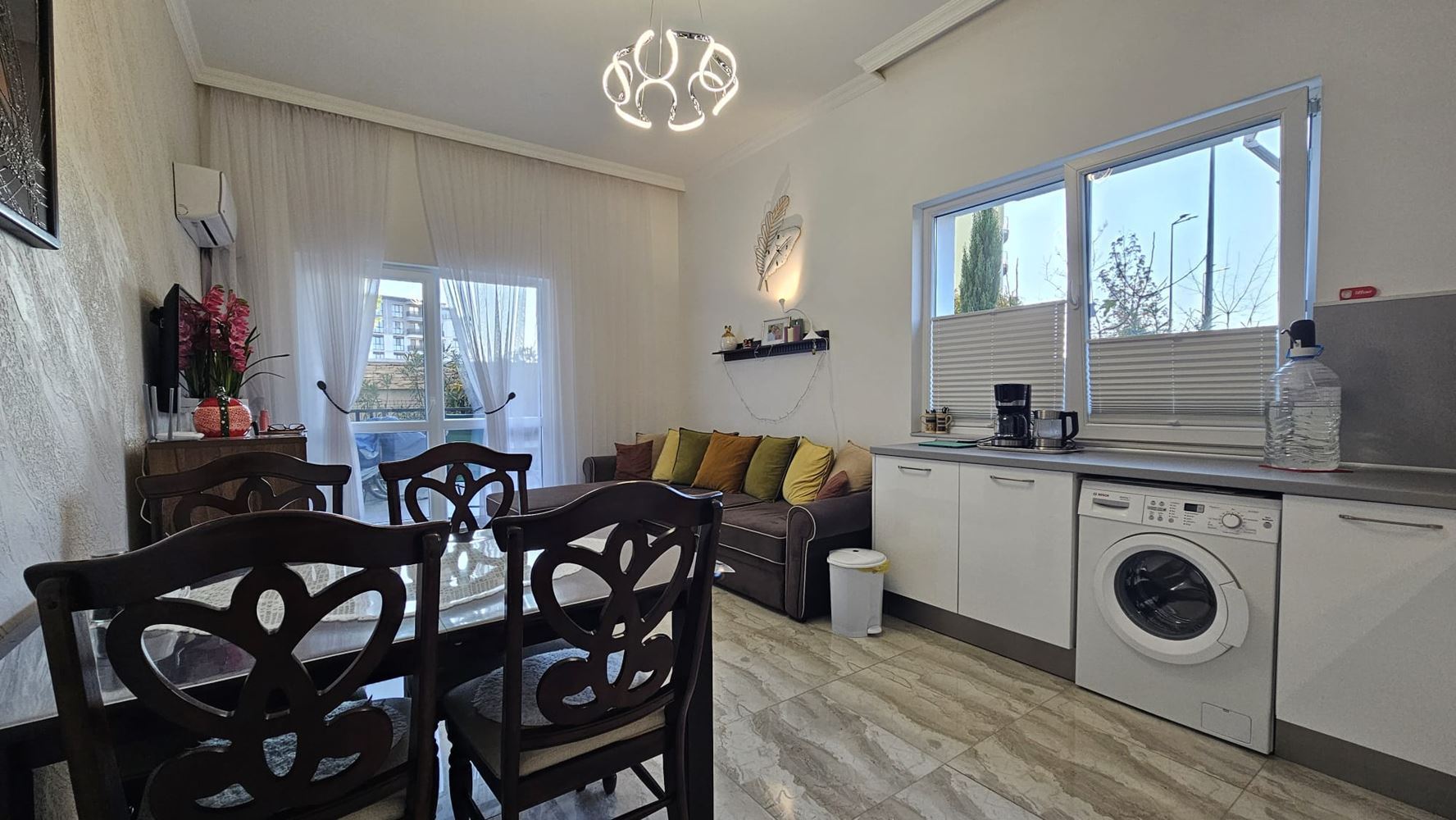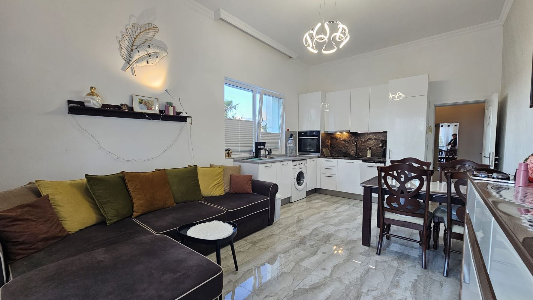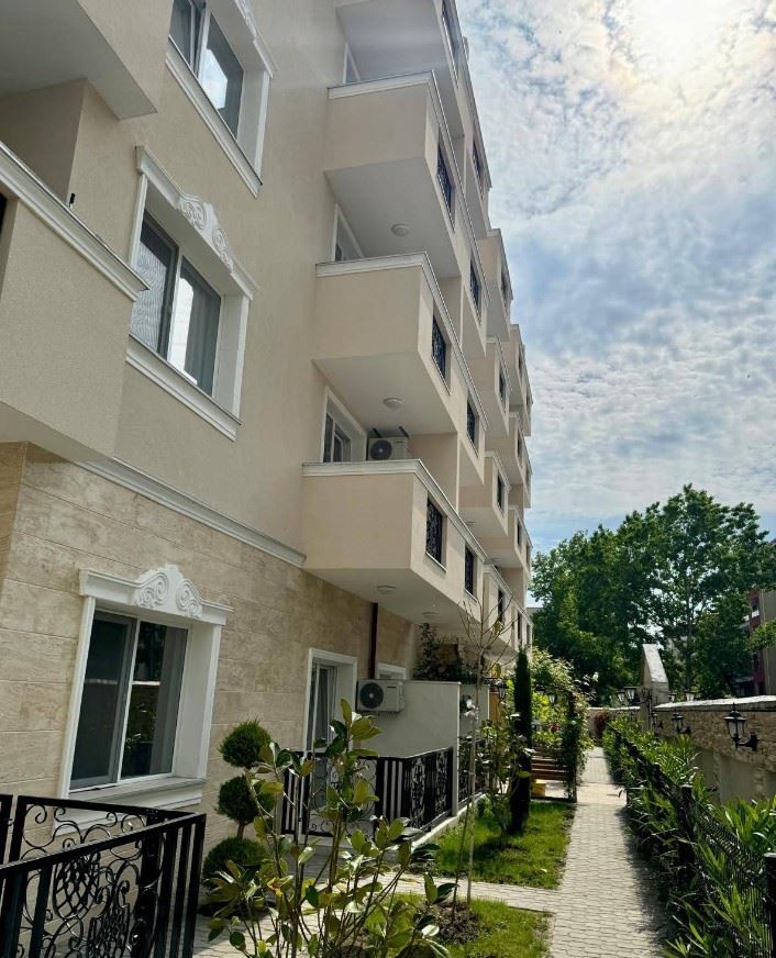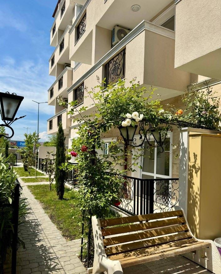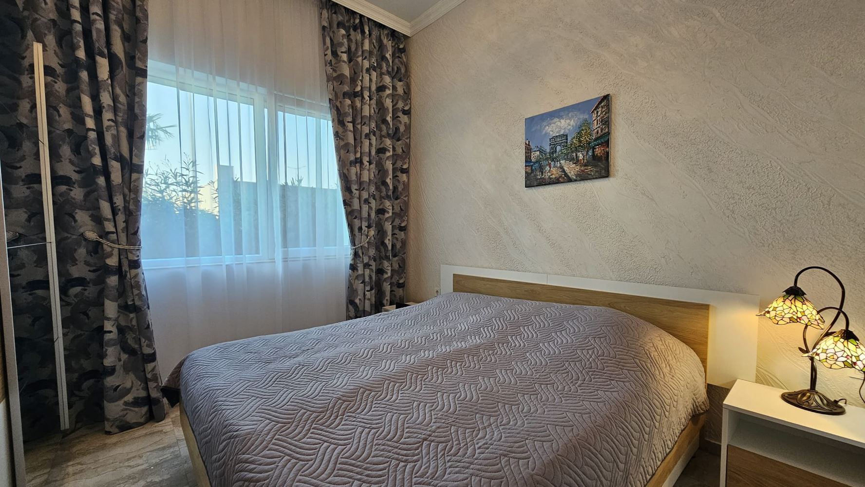 Предлагаем на продажу уютную двухкомнатную квартиру на первом этаже престижного комплекса в Солнечном Береге. Недвижимость полностью меблирована и готова к заселению, а большая терраса с прямым выходом во двор создаёт ощущение простора, свободы и удобства – идеально подходит для утреннего кофе, зоны отдыха или безопасного места для игр детей и домашних животных. Общая площадь квартиры составляет 60,10 м², планировка функциональна: прихожая, светлая гостиная с зоной отдыха и столовой, отдельная кухонная зона, комфортная спальня, ванная комната с туалетом и просторная терраса/балкон. Дизайн и мебель подобраны так, чтобы обеспечить максимальный комфорт, а большие окна наполняют помещение естественным светом.
