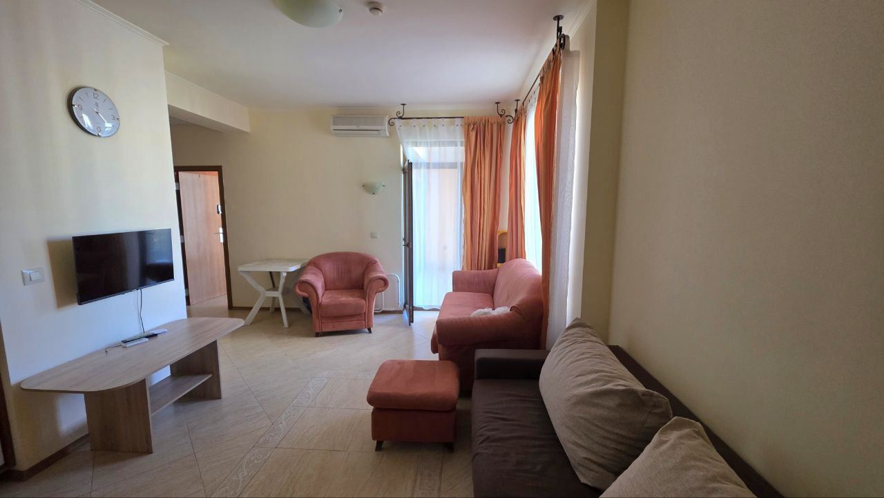 Предлагаем вашему вниманию светлую и уютную двухкомнатную квартиру площадью 71,35 м², расположенную на четвёртом этаже ухоженного курортного комплекса на Солнечном берегу. Жильё продаётся полностью меблированным и оснащённым, готовым для проживания, в здании есть удобный лифт.