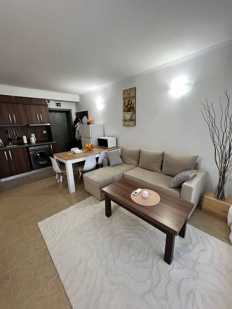 Квартира имеет общую площадь 57 м² и включает рационально организованное внутреннее пространство. В нее входят светлая гостиная с кухонным уголком, создающая удобную и практичную среду для повседневной жизни и отдыха, комфортабельная спальня и ванная с туалетом, спроектированная с учетом функциональности. Квартира находится в отличном состоянии и продается полностью меблированной и оснащенной техникой, что позволяет немедленно въехать без дополнительных затрат.
