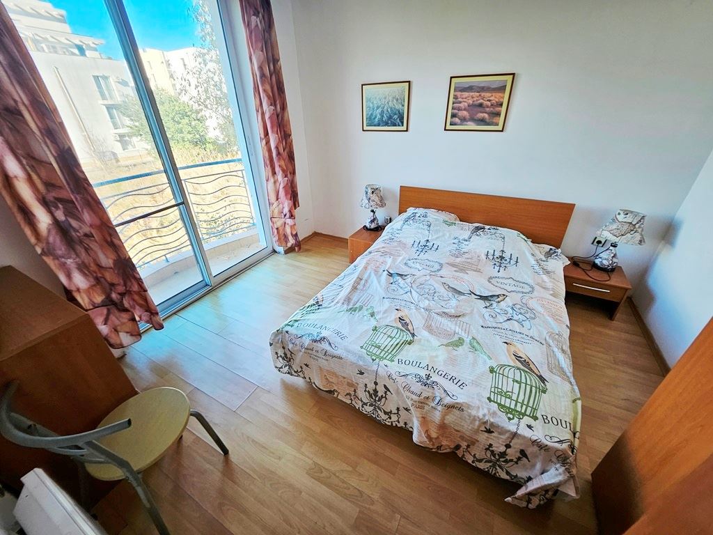 Предлагаем светлую двухкомнатную квартиру с приятным видом, расположенную в курорте Солнечный берег. Квартира находится на втором этаже и имеет общую площадь 40 м², предлагая комфортное и рационально организованное пространство. Планировка включает гостиную с кухонным боксом и обеденной зоной, отдельную спальню, ванную комнату с туалетом и небольшой балкон с видом на территорию комплекса.