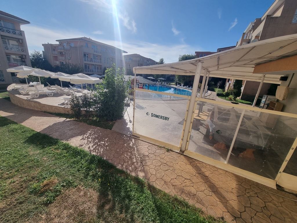 Предлагаем на продажу двухкомнатную, не меблированную квартиру общей площадью 41 м², расположенную на первом этаже ухоженного комплекса в районе курорта Солнечный берег. Недвижимость является отличным выбором для отдыха или инвестиций, с функциональной планировкой и удобным доступом. Квартира состоит из светлой гостиной с местом для кухни, отдельной спальни, ванной комнаты с туалетом и балкона. Отсутствие мебели даёт вам возможность оформить интерьер по своему вкусу и стандартам.