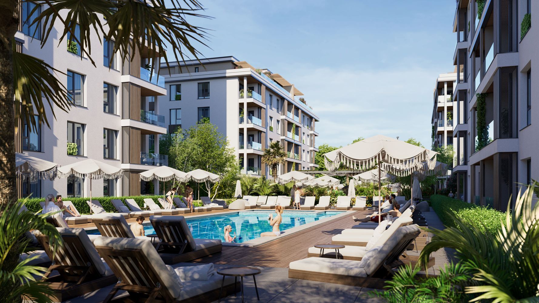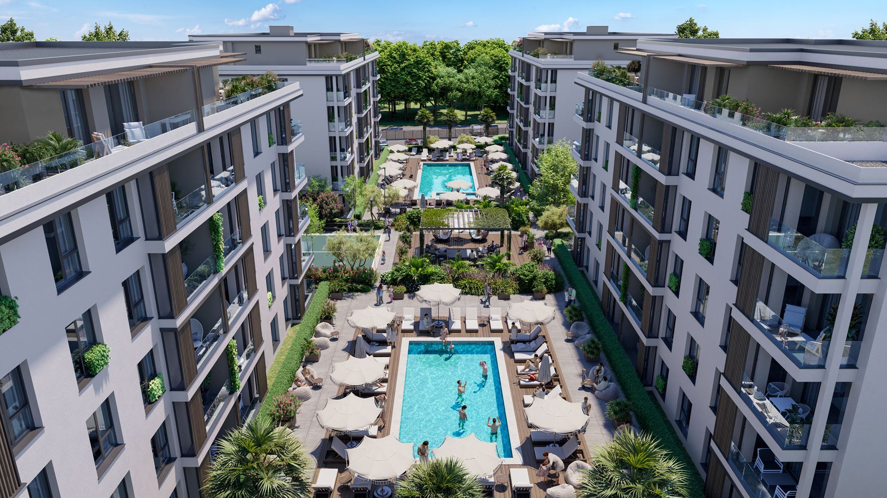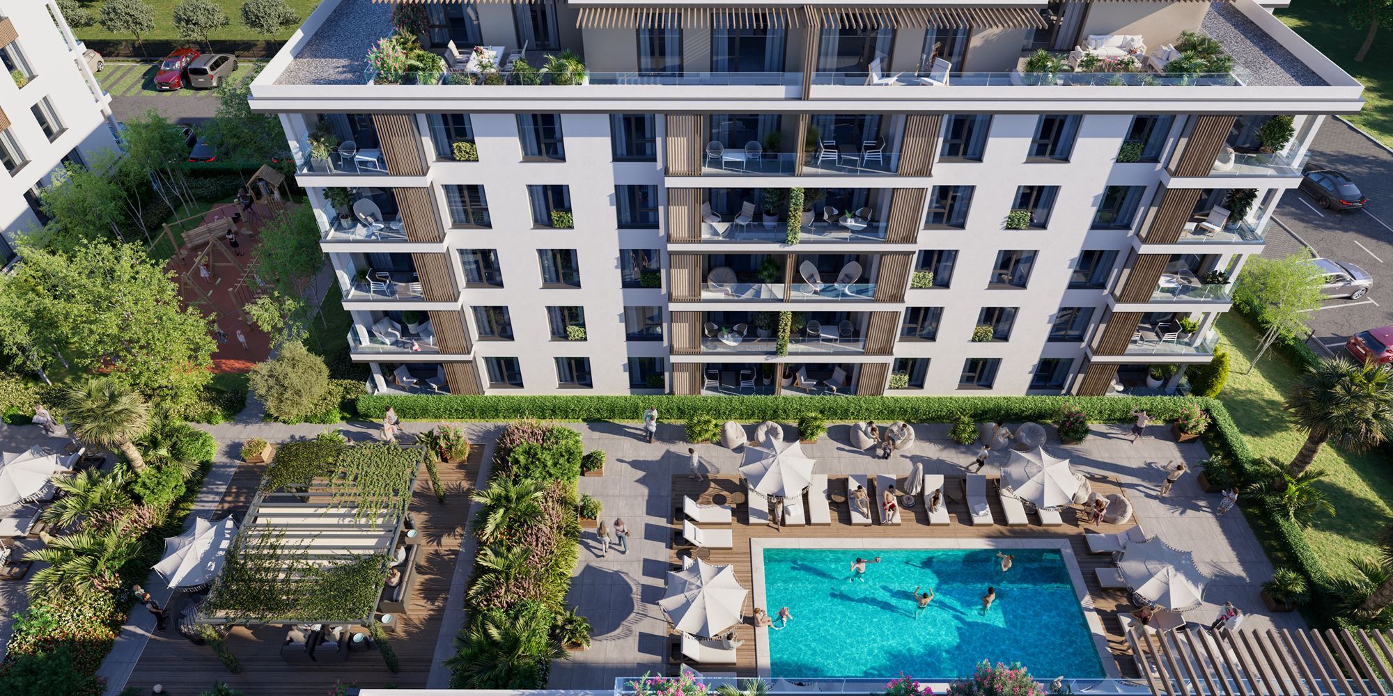 Комплекс впечатляет современной архитектурой и богатой озелененной внутренней территорией, создавая курортную атмосферу и спокойствие. Для жителей будут доступны два плавательных бассейна, подходящие как для отдыха, так и для активного времяпровождения в летние месяцы, а также специально обустроенная детская площадка, обеспечивающая безопасную и веселую среду для малышей. Зона отдыха и зеленые площади предлагают возможность релаксации на природе, а площадка для пиклбола и бадминтона способствует активному и социальному образу жизни.