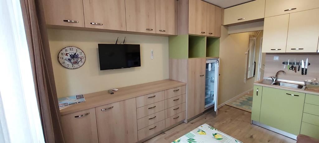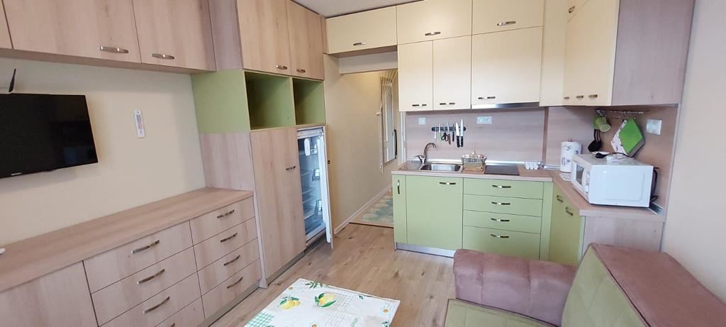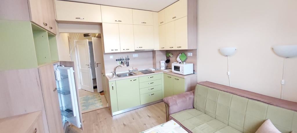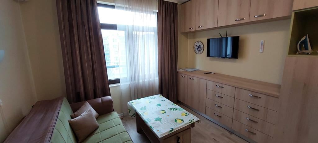 Однокомнатная квартира-студия в жилом комплексе бизнес класса, который построен в центральной спокойной жилой части города Поморие. Муниципальный центр и известный бальнеологический город-курорт Поморие располагает прекрасной инфраструктурой как для постоянного проживания на побережье, так и для сезонного отдыха у моря. Красивый жилой комплекс построен на большой зеленой территории буквально в трех минутах от моря и прекрасного пляжа. Квартира площадью 27 м2 расположена на пятом этаже. Стильная и современная квартира грамотно оформлена для удобного проживания. В шаговой доступности находится бальнеологическая лечебница, СПА-центр, центральная пешеходная зона, разнообразные магазины, рестораны, кафе и прочее. Комплекс располагает большой парковой территорией с освещением, охраной, парковкой.