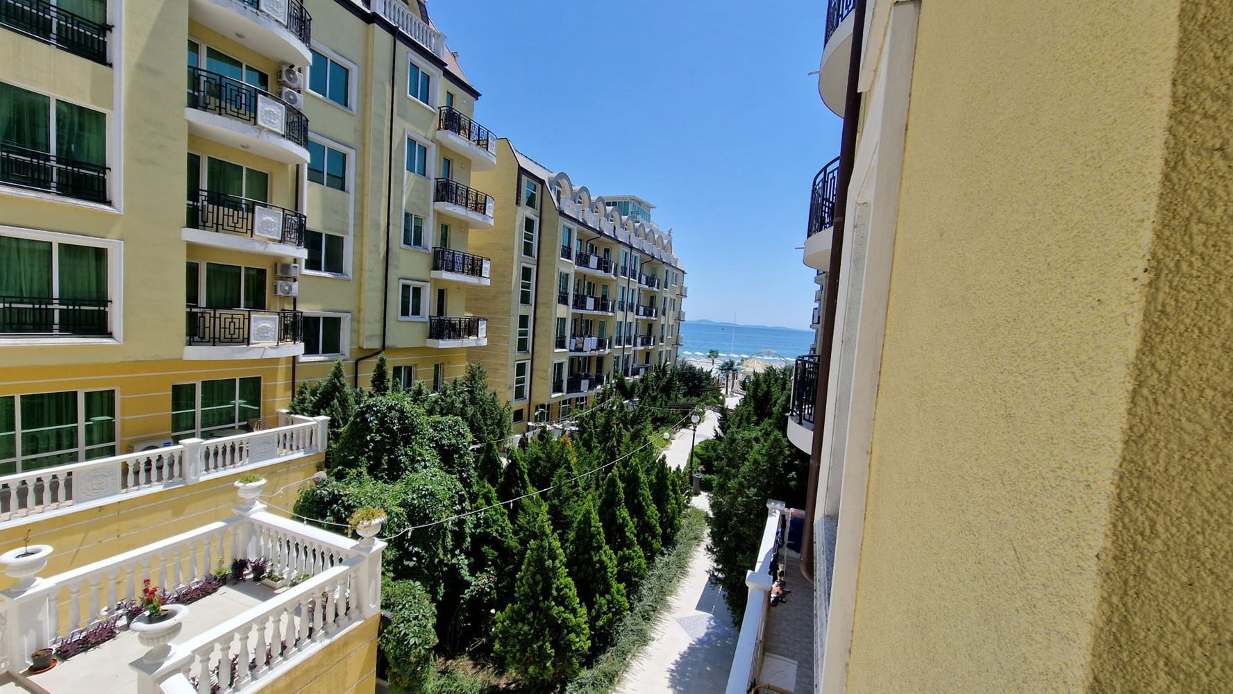 Предлагаем вашему вниманию элегантную двухкомнатную квартиру с безупречной локацией – первая линия в курорте Елените. Это жильё сочетает спокойствие живописного побережья с комфортом высококачественного интерьера, создавая идеальную атмосфеу для полноценного отдыха и релакса. Общая площадь составляет 66 м², а планировка продумана для максимального удобства: светлая и просторная гостиная с местом для кухонного бокса и столовой, уютная отдельная спальня, ванная комната с туалетом и практичный входной коридор. Квартира располагает одним балконом – настоящей сценой к морю, где утро начинается с шума волн, а вечер – с впечатляющих закатов.