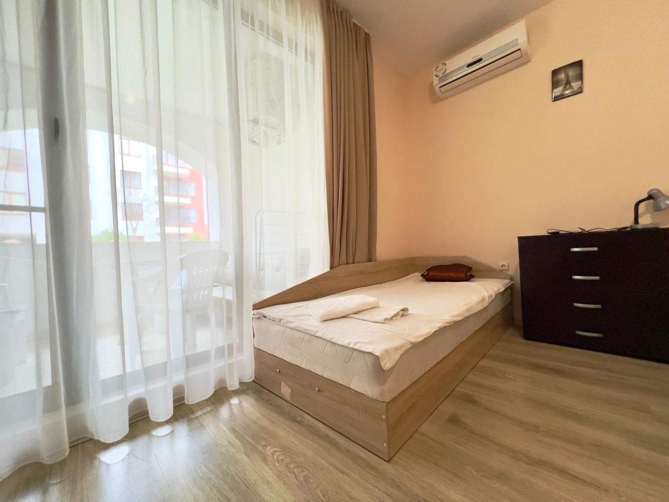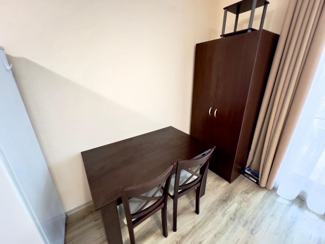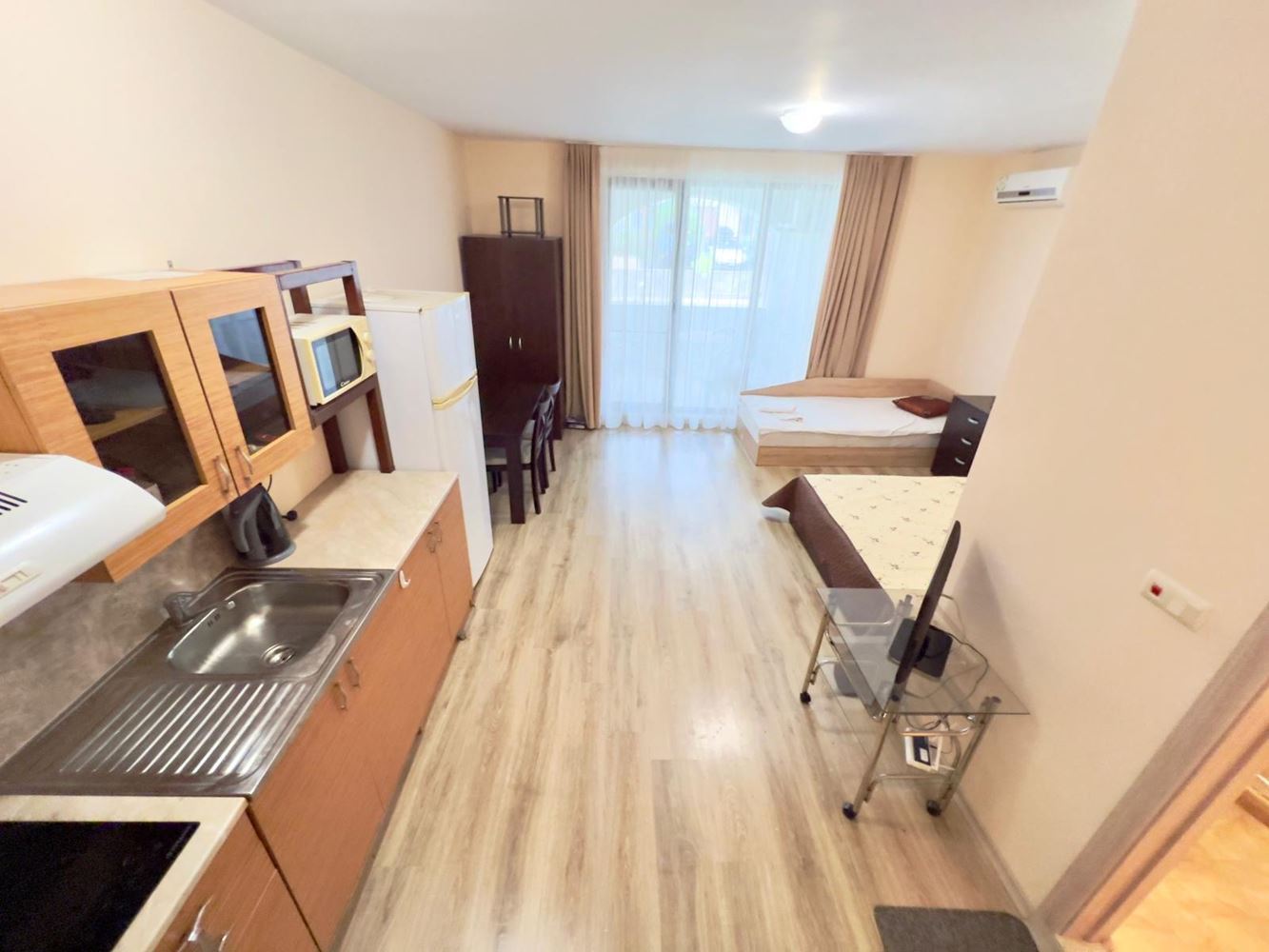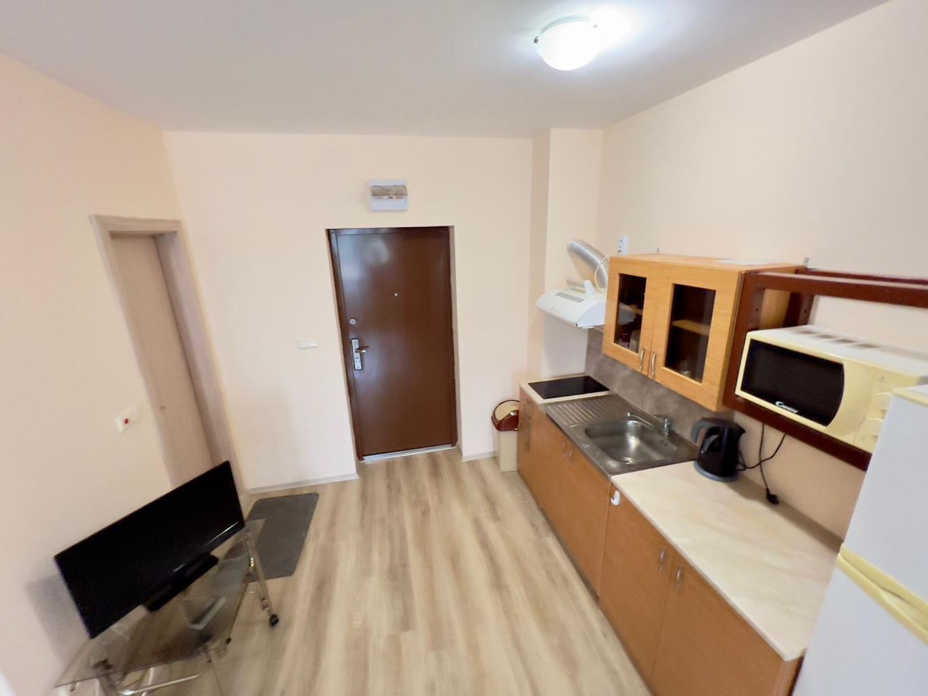 Меблированная квартира-студия в курортном городе Несебр в современном комплексе закрытого типа. Квартира находится всего в 200 метрах от пляжа и моря, что обеспечивает легкий доступ к пляжным развлечениям и морским прогулкам. Рядом с комплексом также находится множество объектов инфраструктуры, включая кафе, магазины, рестораны, бары и остановку общественного транспорта. Комплекс предоставляет ряд удобств, таких как уютная парковая территория с местами для отдыха, открытый бассейн с зоной отдыха, парковка и детская площадка. Присутствие управляющей компании обеспечивает удобство в управлении недвижимостью. Квартира имеет общую площадь 43 квадратных метров и предлагает удобную планировку с выделенной зоной для сна/отдыха и кухонным блоком. Также есть балкон и санузел с душем. Квартира продается с мебелью и обстановкой, что делает ее готовой для заселения. Это позволяет избежать дополнительных расходов на мебель и оборудование.