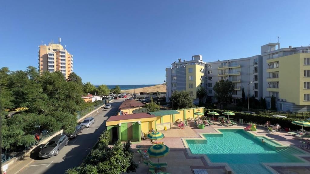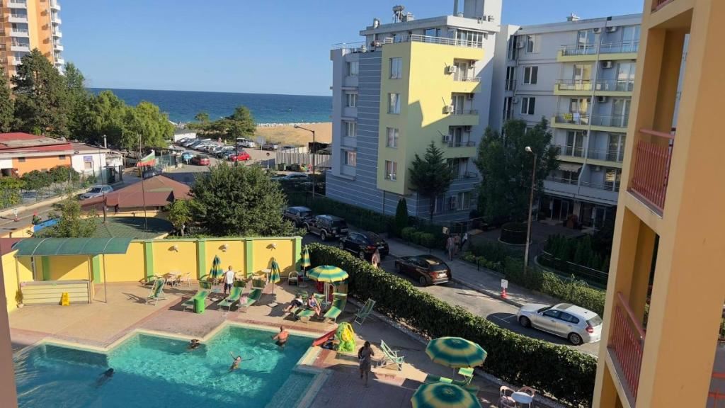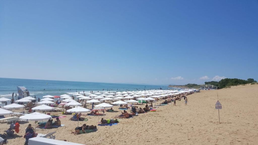 Локация — одно из главных преимуществ. Всего 3 минуты пешком до золотистого Южного пляжа и оживлённой набережной; 10 минут — до центра Несебра, а Старый город находится в 5 минутах прогулки. Рядом продуктовый магазин, рестораны, разнообразные магазины и автобусная остановка.