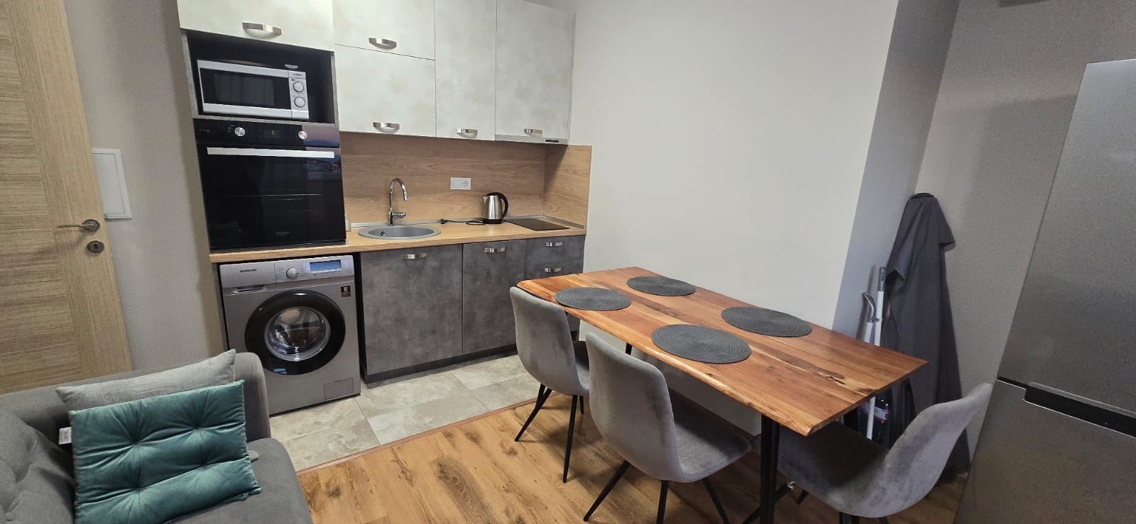 Представляем вам отличную возможность приобрести меблированную квартиру с двумя спальнями, расположенную в одном из популярных комплексов в Равде. Эта элегантная недвижимость расположена на последнем, пятом этаже и предлагает потрясающий вид на море, которым вы можете наслаждаться с просторной террасы. Квартира общей площадью 60,93 кв. м функционально распределена для максимального комфорта. В ней есть две уютные спальни, стильная гостиная с интегрированной кухонной зоной, оборудованной всей необходимой бытовой техникой, ванная комната и прихожая. Изысканно меблированная, эта квартира готова принять вас немедленно.