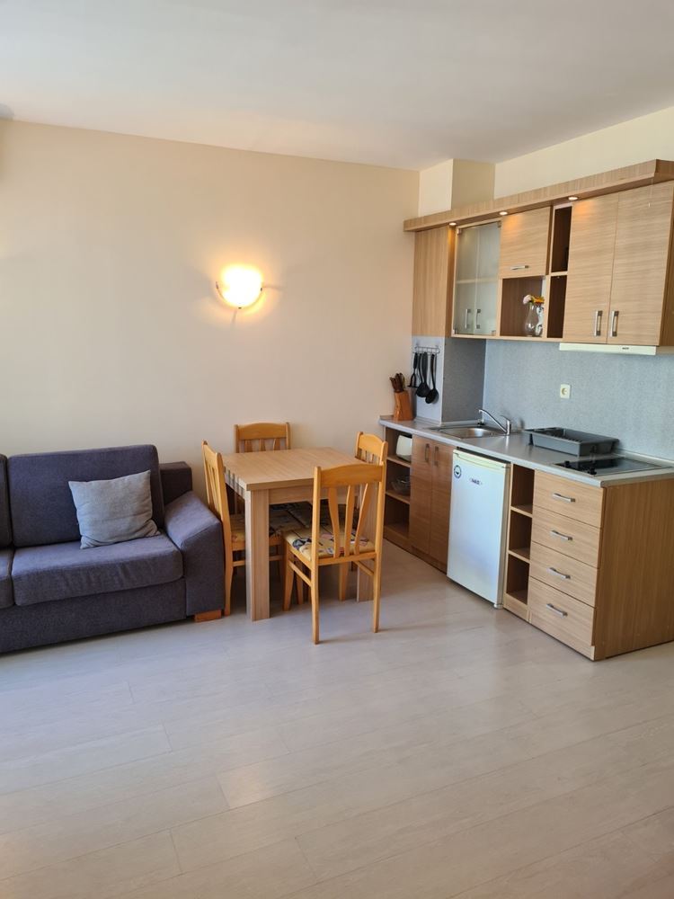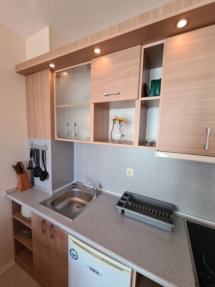 Просторная и полностью меблированная студия расположена в комплексе в южной части курорта Солнечный берег. Эта удивительно стильная квартира площадью 42 м2 расположена на третьем этаже здания. Расстояние до прекрасного песчаного пляжа не превышает 200 метров.
