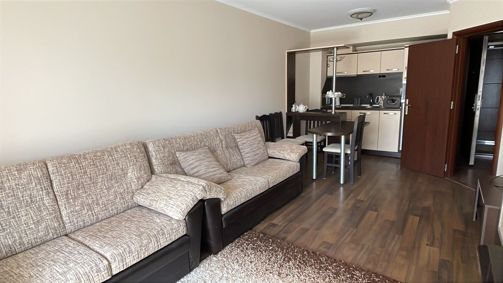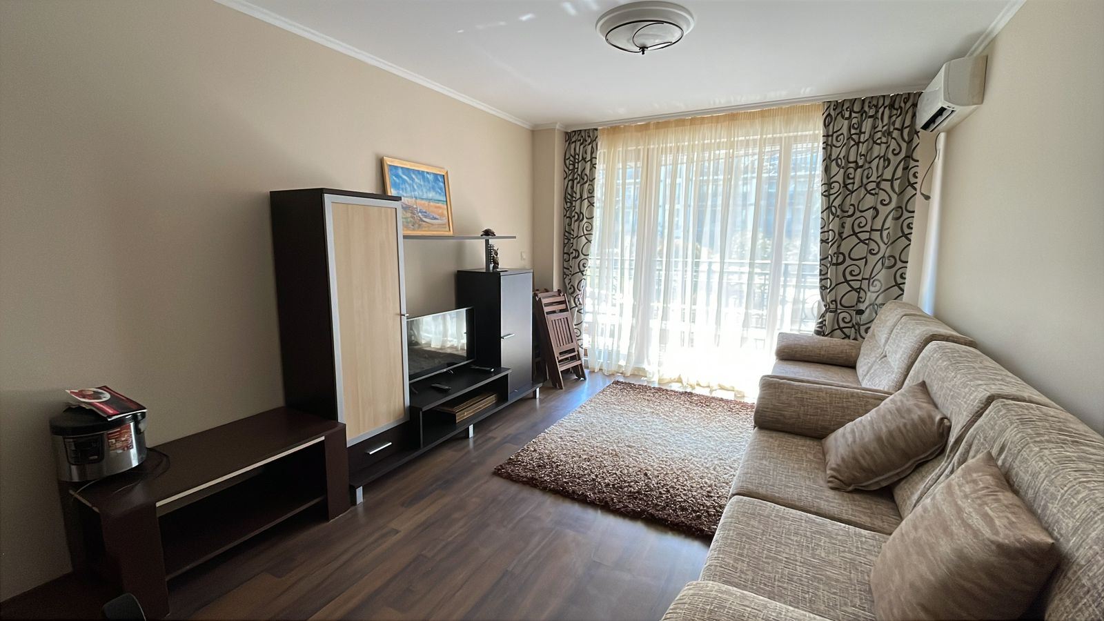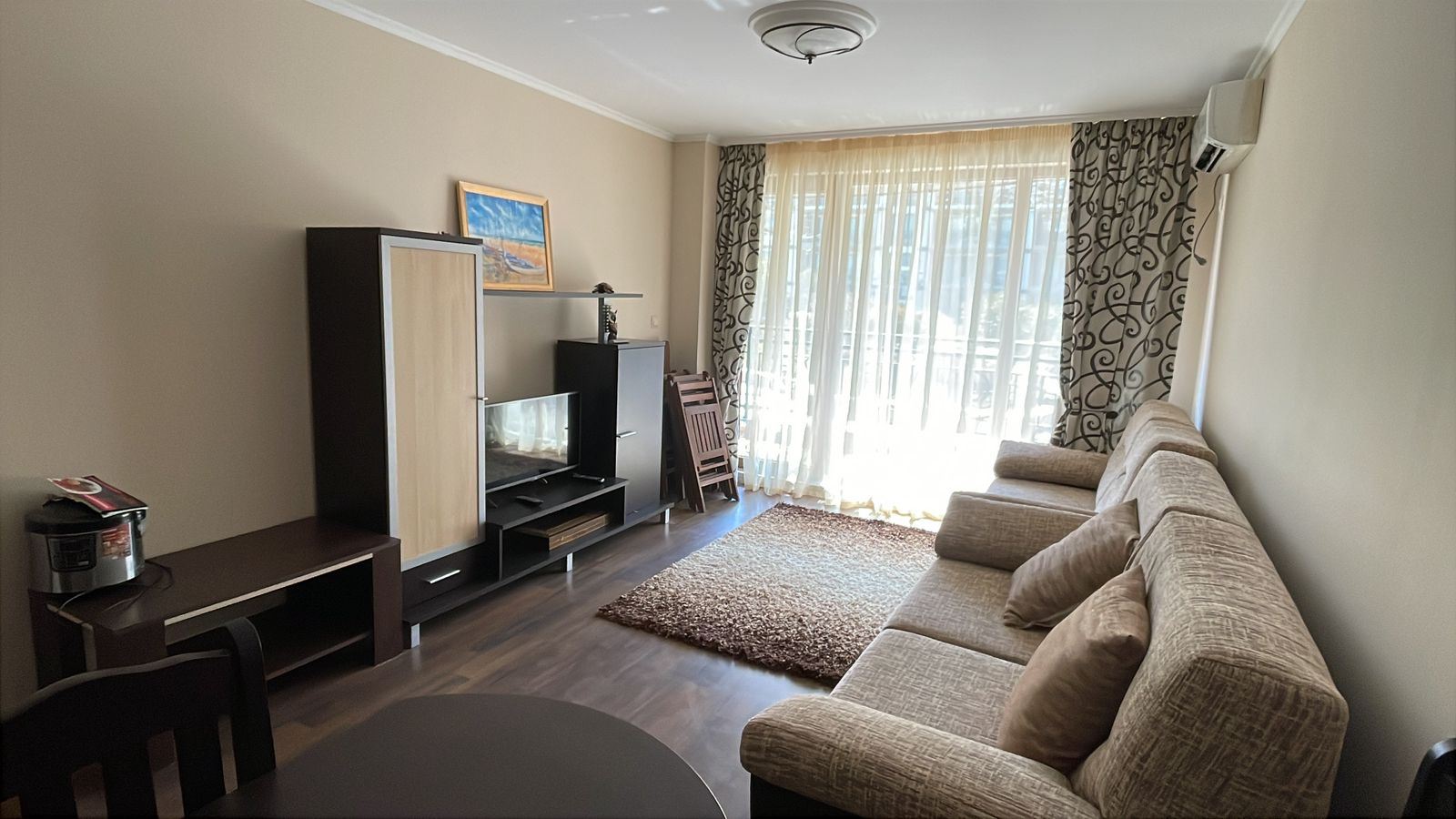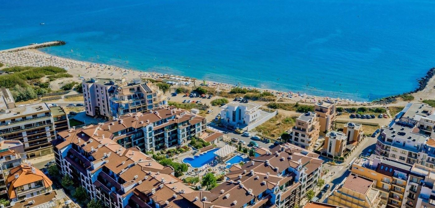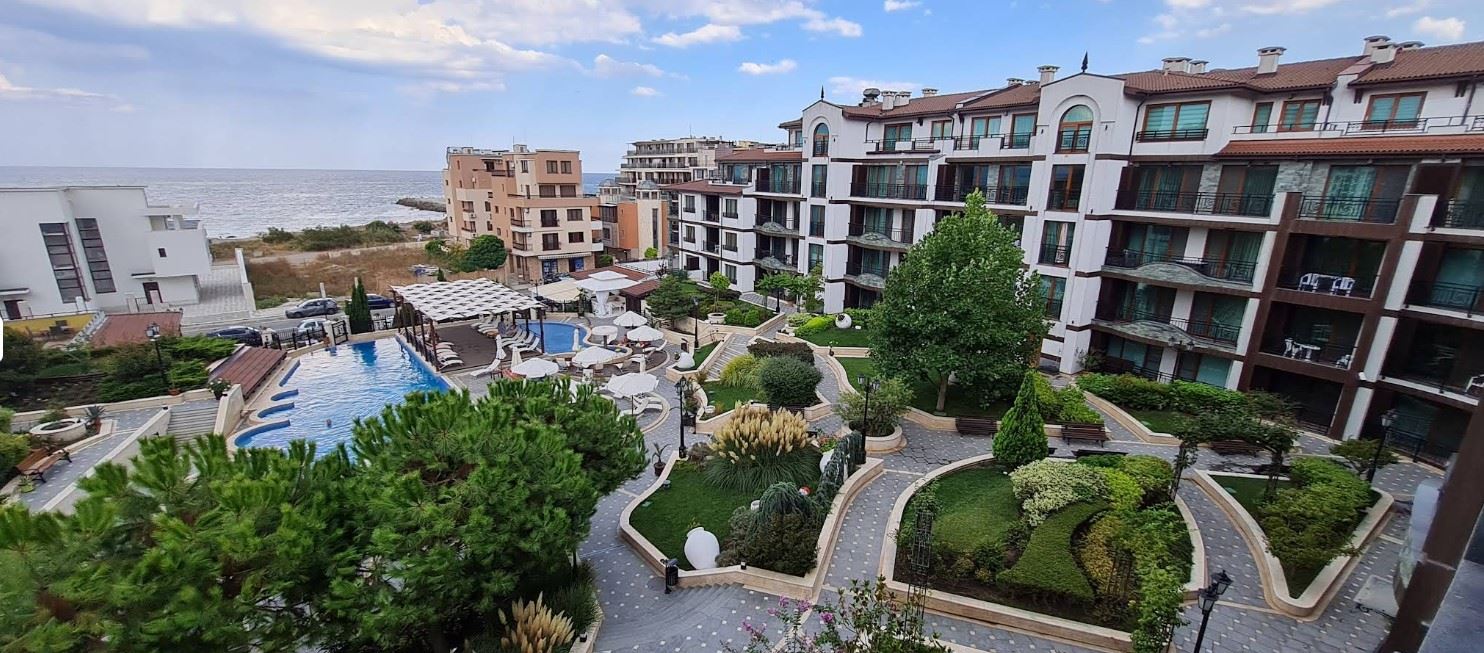 Представляем уютную и полностью меблированную квартиру с одной спальней общей площадью 62 m², расположенную на первом этаже современного комплекса, всего в 50 метрах от моря в городе Поморие. Недвижимость сочетает комфорт, отличное расположение и приятный вид на двор и бассейн, что делает её идеальным выбором как для личного пользования, так и для инвестиций. Квартира имеет функциональную и хорошо организованную планировку, включающую просторный коридор, светлую гостиную с кухонной зоной, уютную спальню, ванную комнату с туалетом и большую террасу. Терраса является одним из главных преимуществ объекта – с неё открывается приятный вид на красиво озеленённый внутренний двор и бассейн, создающий идеальную атмосферу для отдыха, утреннего кофе или спокойных вечеров на свежем воздухе.