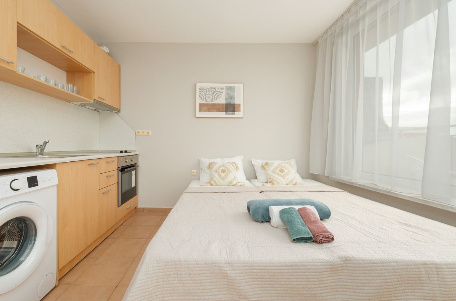 Предлагаем вашему вниманию уютную студию после косметического ремонта, с новым кондиционером и полным комплектом документов для сделки, что делает ее отличным выбором как для личного проживания, так и для инвестиций. Площадь недвижимости составляет 42 м², имеется терраса с западной ориентацией, обеспечивающая приятное освещение и комфортную атмосферу во второй половине дня и вечером. Жилье имеет Акт 16 и расположено на третьем, последнем этаже ухоженного здания.