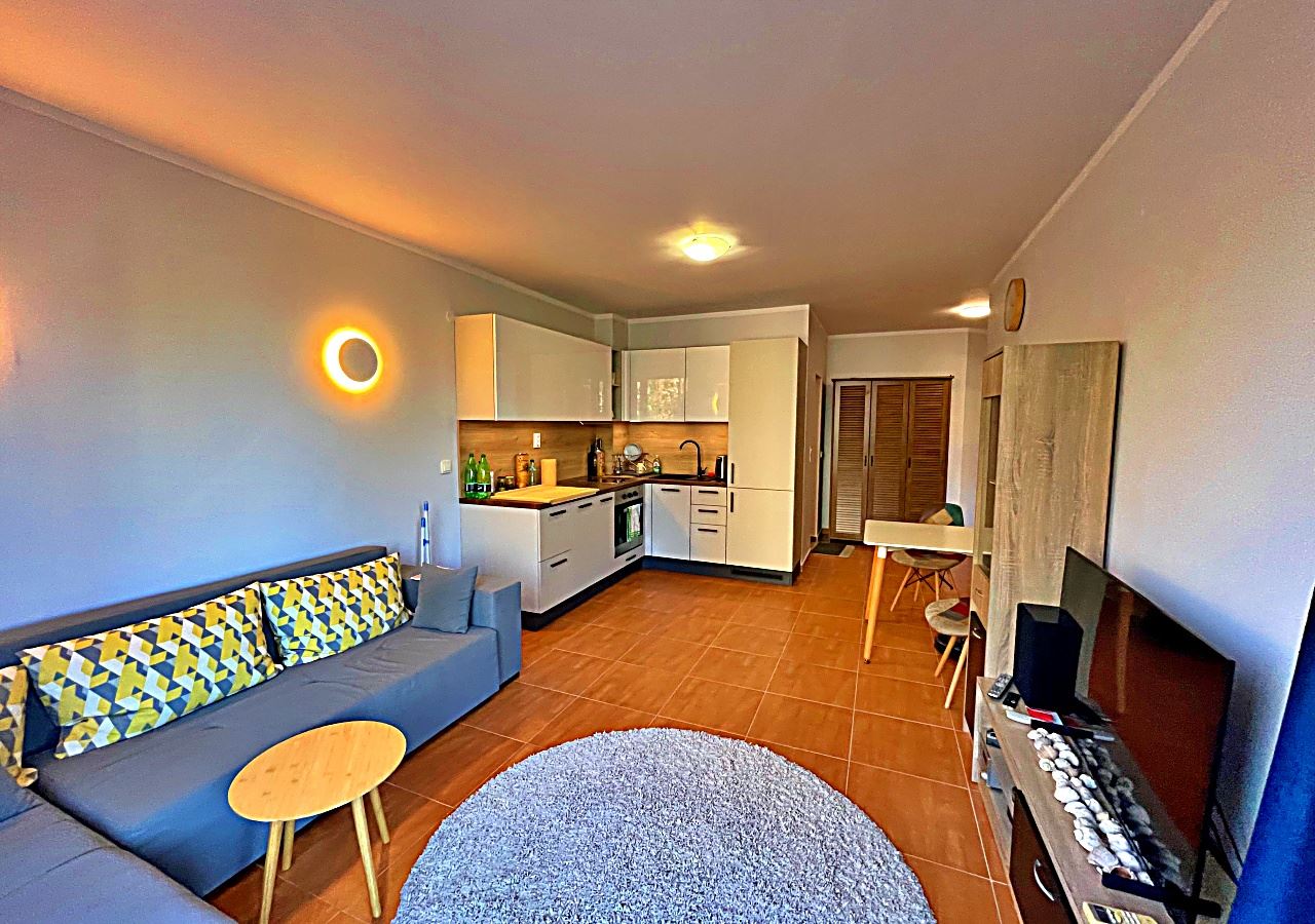 Предлагаем уютную и функциональную двухкомнатную квартиру в приятном районе Святого Власа, расположенную на втором жилом этаже в доме с лифтом. Недвижимость впечатляет комфортной атмосферой, готовностью к заселению и прекрасными видами на город и горы. Общая площадь квартиры составляет 61 м² и включает хорошо продуманную планировку: просторный прихожая, светлая гостиная с кухонным боксом, отдельная спальня, ванная комната с туалетом и терраса – идеальное место для утреннего кофе и отдыха на свежем воздухе с панорамным видом на окрестности. Квартира продается полностью меблированной и оснащенной техникой, что делает её готовой к немедленному использованию – отличный выбор как для нового дома без дополнительных вложений, так и для недвижимости с высоким арендным потенциалом.
