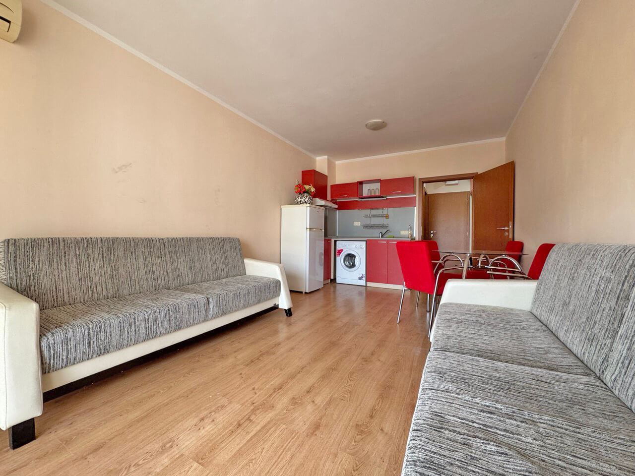 Продается уютная и функциональная студия с прекрасным видом на бассейн, расположенная в ухоженном комплексе в Солнечном Береге. Недвижимость является идеальным вариантом как для летнего отдыха у моря, так и для инвестиций с отличным потенциалом сдачи в аренду в летний сезон. Площадь студии составляет 43 м², планировка включает: прихожую, светлую гостиную с кухонным уголком и отдельной зоной для сна, ванную комнату с туалетом и удобную террасу с приятным видом на бассейн. Квартира продается полностью меблированной – готова к проживанию без дополнительных вложений.