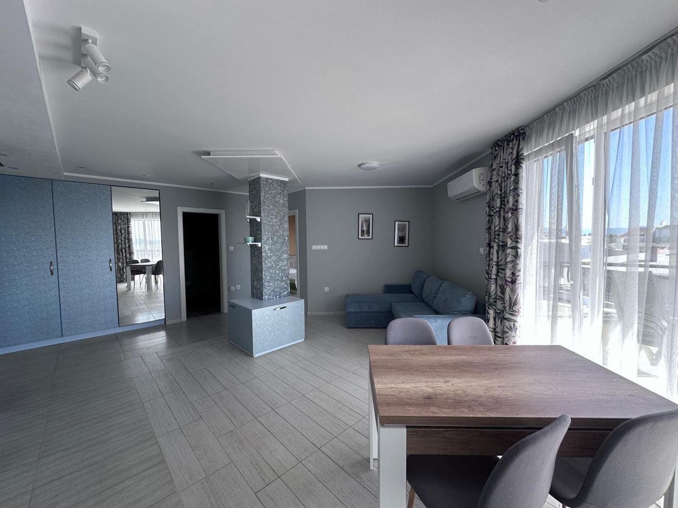 Предлагаем к продаже просторную двухкомнатную квартиру с впечатляющим морским видом, расположенную на последнем этаже ухоженного комплекса в Равде. Общая площадь — 104 м², полностью отремонтирована и меблирована новой мебелью и техникой — готова для заселения или сдачи в аренду сразу.