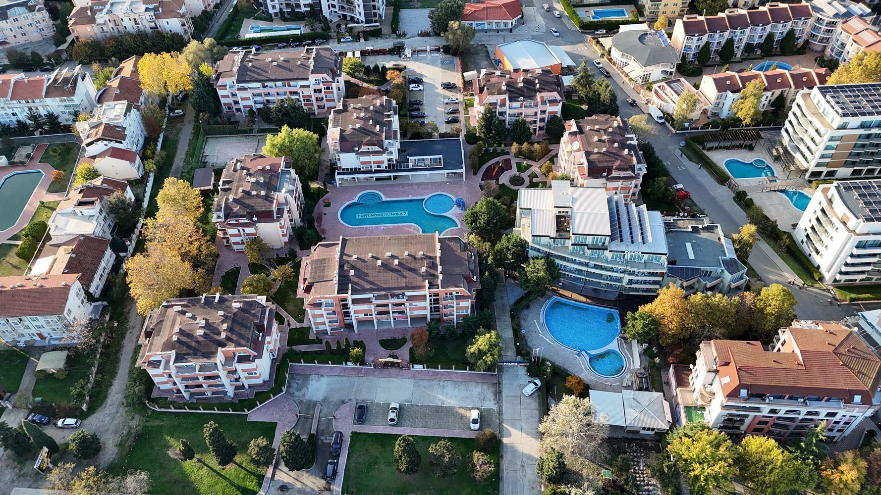 Комплекс располагает отдельными электросчётчиками и электричеством для бытовых нужд, что является существенным преимуществом для постоянного проживания и более низких расходов. На территории имеется большая парковка, обеспечивающая удобство для собственников и их гостей. Для семей с детьми построены детские площадки, а для любителей водных развлечений — бассейн для взрослых и отдельный детский бассейн, создающие ощущение отдыха в летний сезон.