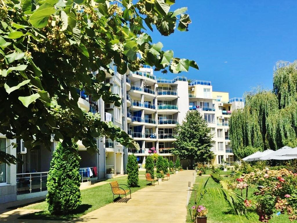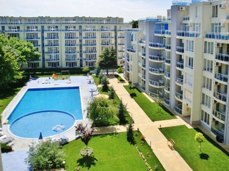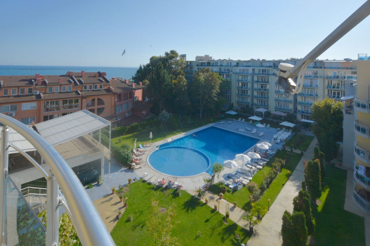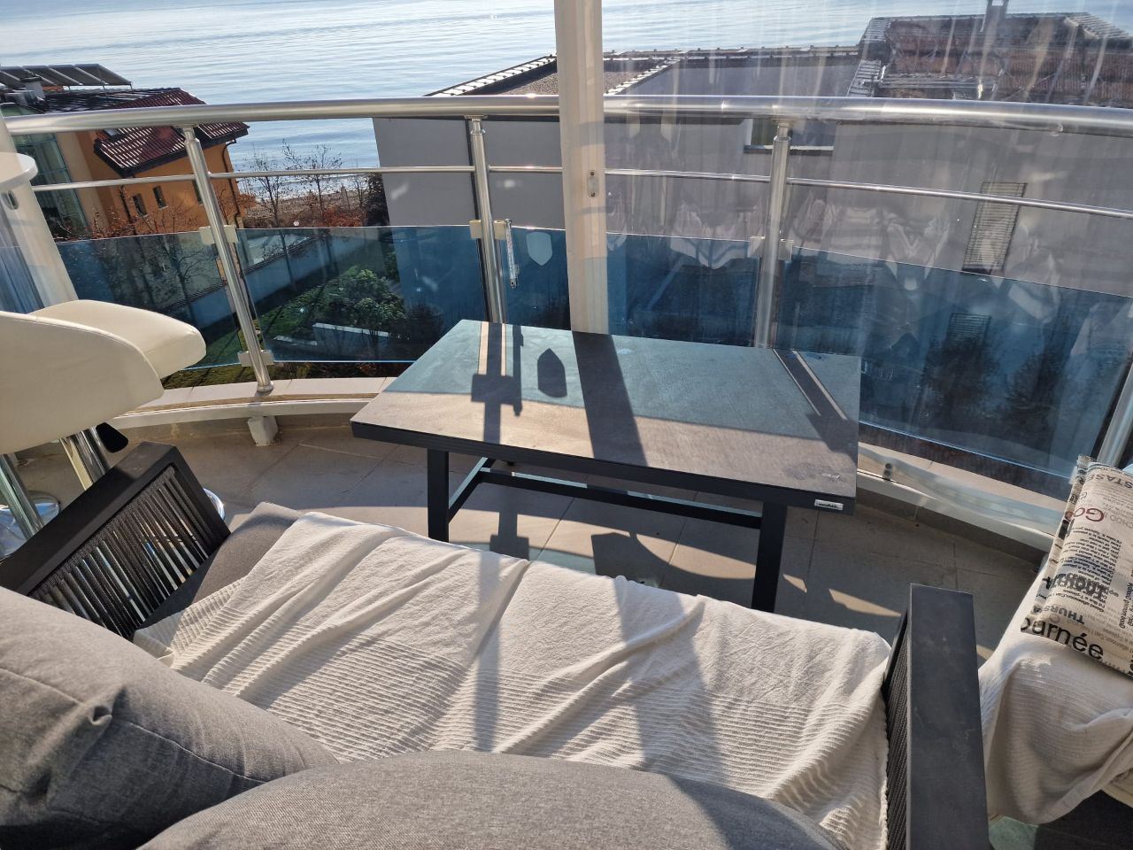 Панорамная трёхкомнатная квартира с видом на море в комплексе в 50 м от пляжа в Равде