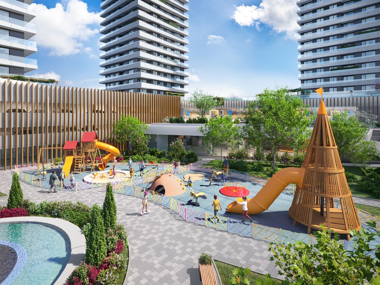 Для удобства жителей комплекс предлагает гипермаркет площадью 3500 м², современные офисные и торговые помещения, а также зоны для спорта и отдыха. Особое внимание уделено семьям – предусмотрены детские площадки, зоны для домашних животных и безопасные игровые пространства, обеспечивающие безопасную и дружелюбную среду.