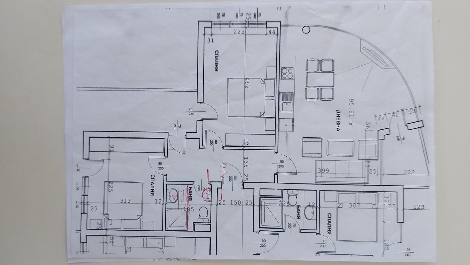 Апартамент общей площадью 96 м² расположен на пятом этаже (не последний) ухоженного здания с лифтом. Планировка включает просторную гостиную с кухонным уголком и обеденной зоной, из которой есть выход на большой балкон с фронтальным видом на море, две отдельные спальни, ванную комнату с туалетом и прихожую. Балкон — идеальное место для утреннего кофе на фоне морского рассвета или вечернего отдыха с прохладным бризом.