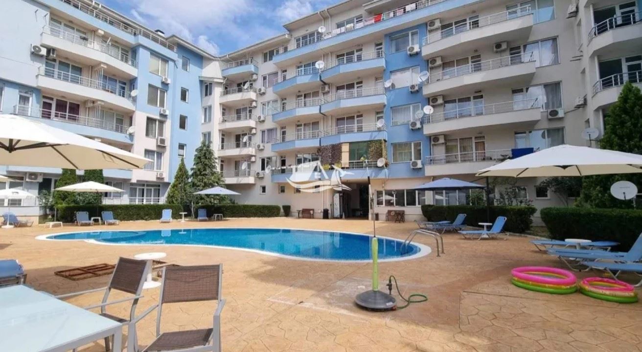 Предлагаем полностью меблированную квартиру с одной спальней, расположенную в предпочтительном районе курорта Солнечный Берег, всего в 500 метрах от пляжа. Локация очень удобная – рядом находятся кафе, рестораны, бары и развлечения для детей, что делает объект подходящим как для семейного отдыха, так и для инвестиций с целью аренды.