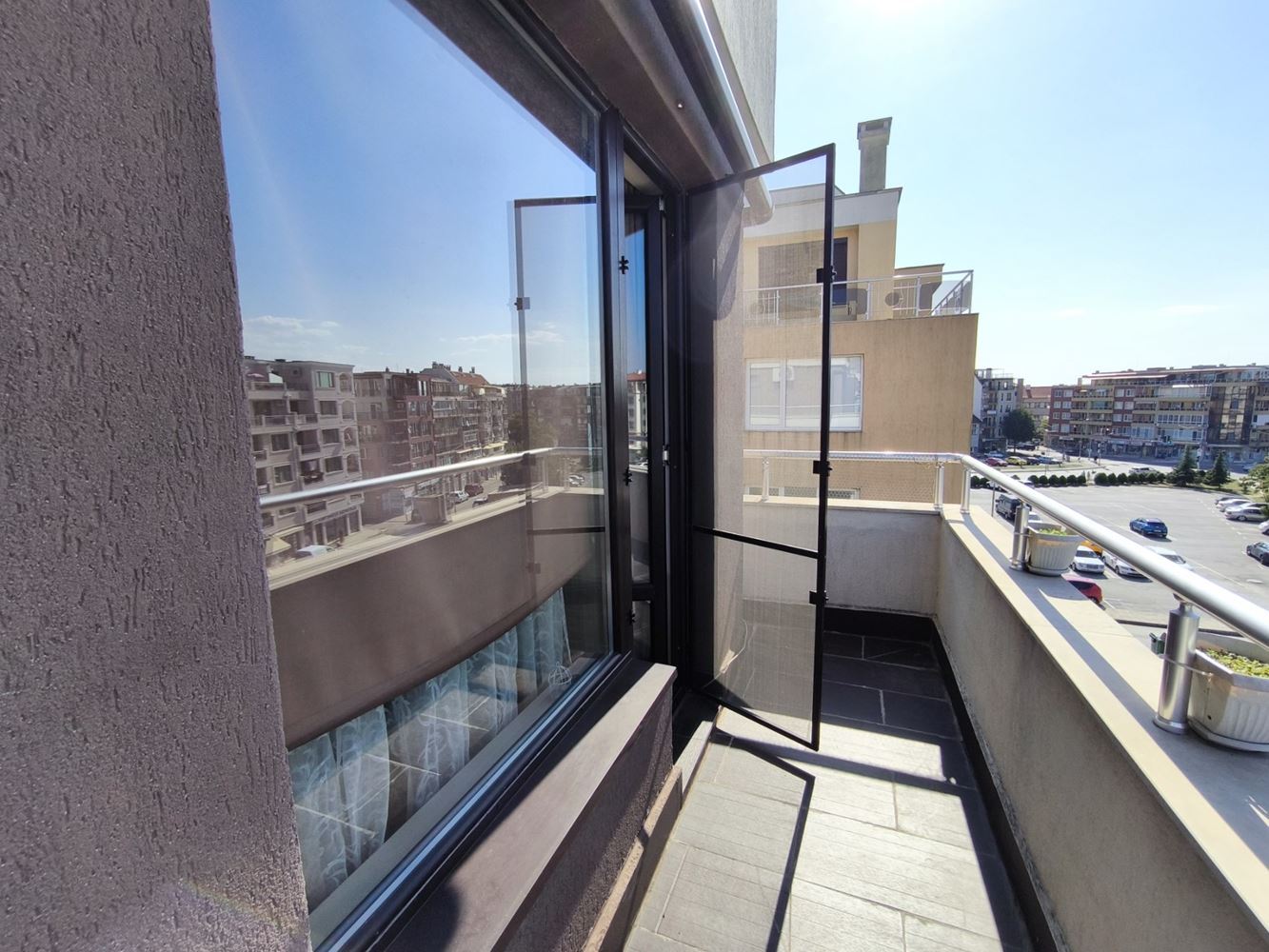 - Вид из окна:Город