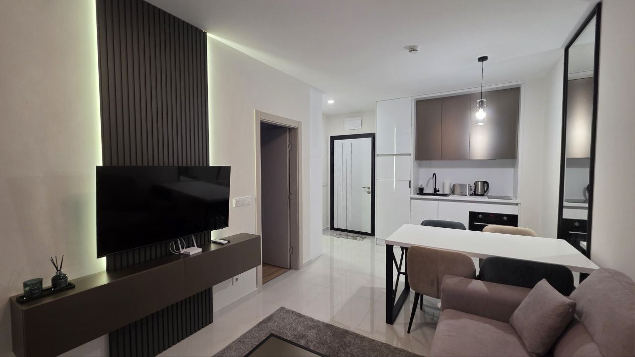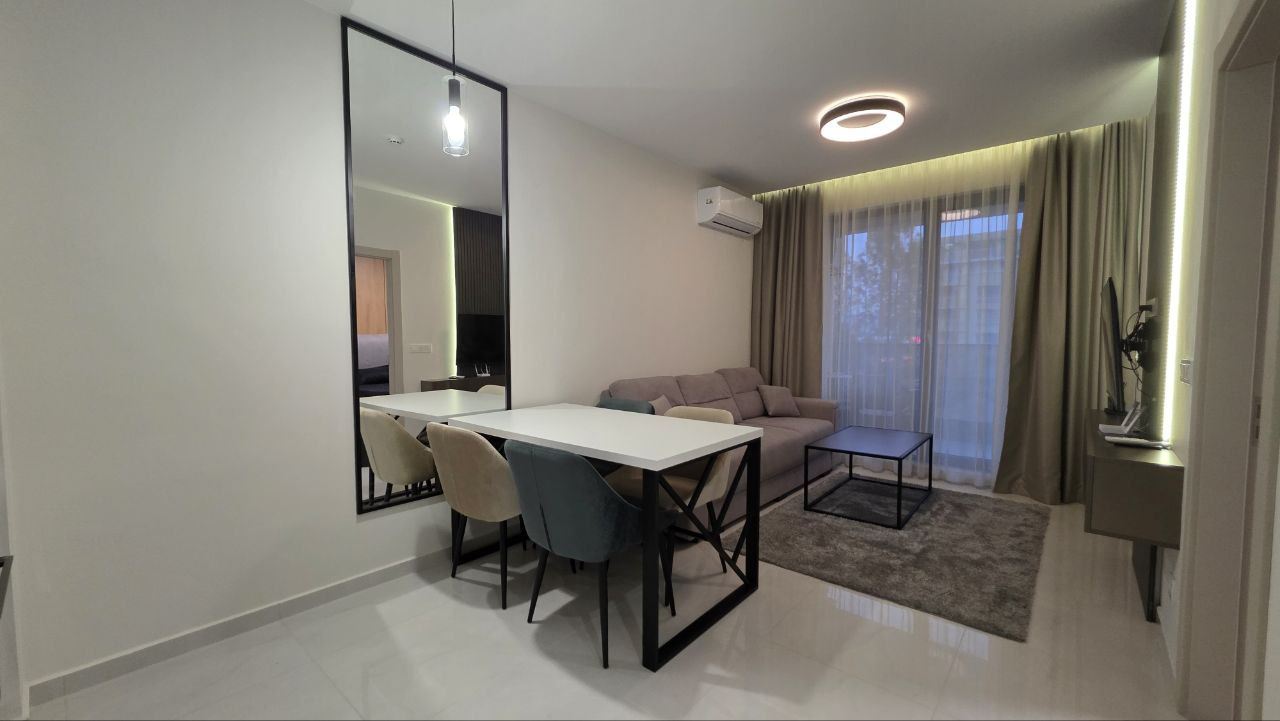 В квартире есть все необходимое для немедленного заселения. Компактная планировка включает в себя две комнаты, одну просторную спальню и уютную гостиную. С балкона можно наслаждаться свежим морским воздухом и видами на окрестности. Ванная комната современно и функционально оборудована.