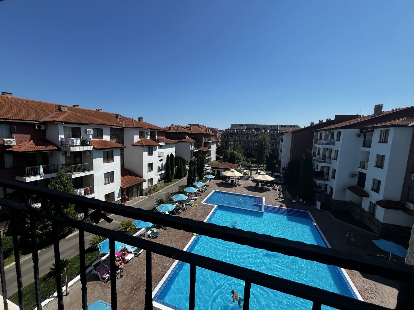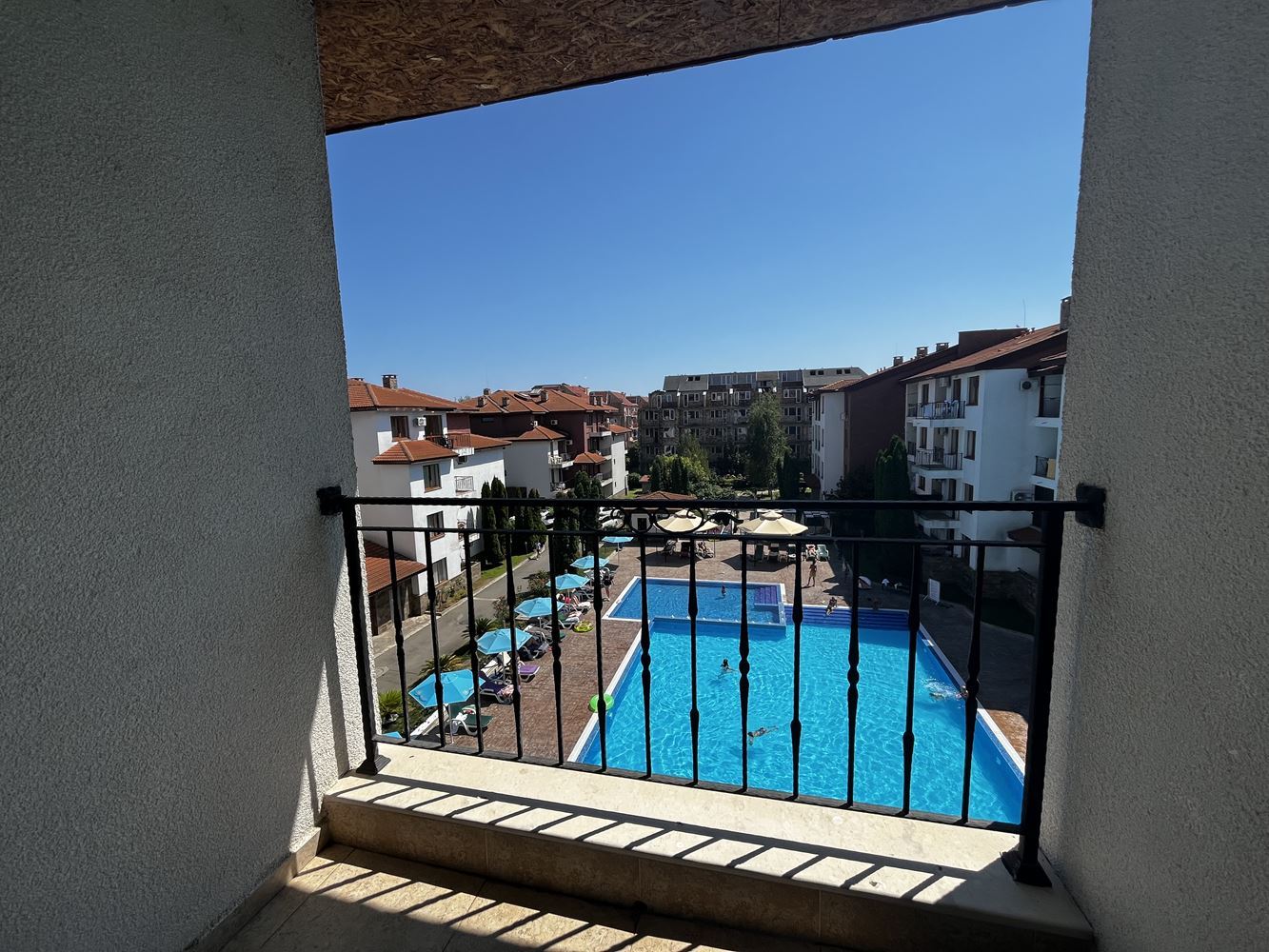 - Вид из окна:Бассейн