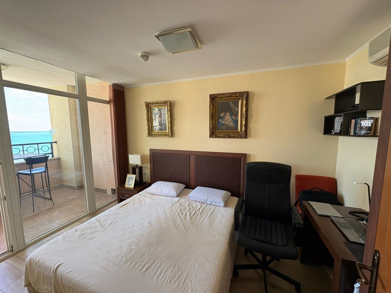 Продается исключительная трёхкомнатная квартира с великолепным видом на море в одном из самых привлекательных комплексов на первой линии в г. Поморие. Эта просторная недвижимость общей площадью 88 м² сочетает комфорт, роскошь и уникальные удобства, удовлетворяющие самые взыскательные вкусы. Квартира расположена на восьмом этаже из десяти, доступна через современный лифт. Интерьер стильно меблирован и готов к заселению. Включает три комнаты: две уютные спальни, светлую и просторную гостиную с выходом на балкон, откуда открывается прямой вид на море. Ванная комната полностью оборудована для вашего удобства.