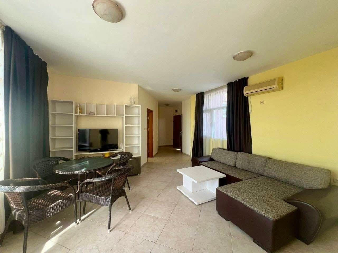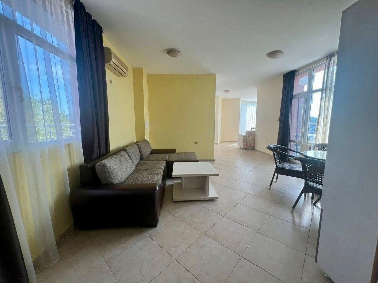Предлагаем вашему вниманию впечатляющую квартиру площадью 162 м², расположенную на шестом этаже ухоженного комплекса в одном из самых спокойных и престижных районов Солнечного Берега. Это объект, который редко появляется на рынке, сочетая в себе простор, функциональность и отличное местоположение рядом с морем и центром курорта.