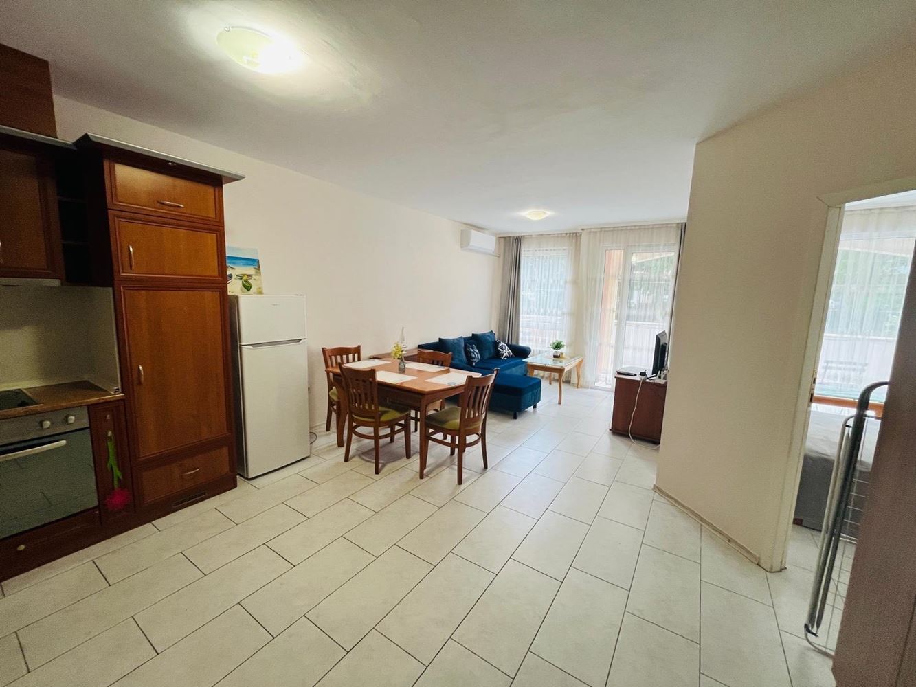 Квартира впечатляет большой и приятной террасой, с которой открывается прекрасный вид на Несебр. Этот уютный наружный уголок идеально подходит как для утреннего кофе, так и для вечернего отдыха после насыщенного дня. Внутреннее пространство хорошо организовано — имеется комфортная гостиная зона, функциональная кухня, спальня и ванная комната. Все помещения полностью меблированы и готовы к проживанию.