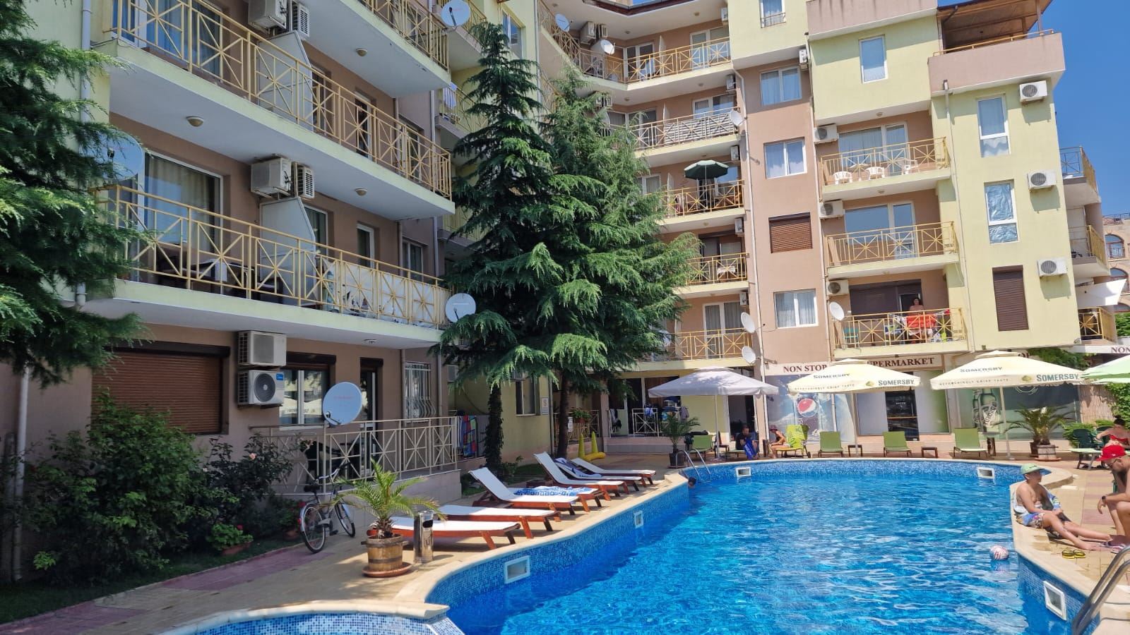 Одним из главных преимуществ квартиры является уникальное расположение – комплекс находится вблизи пляжа и всех основных достопримечательностей Солнечного Берега, при этом в тихом и спокойном районе, обеспечивающем спокойствие и уединение. Это делает квартиру отличным выбором для любителей активного отдыха, а также для тех, кто ценит спокойствие и комфорт у моря.