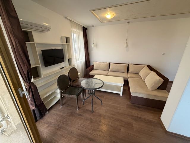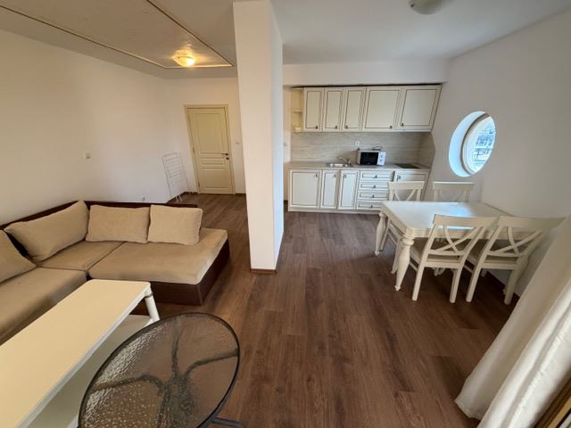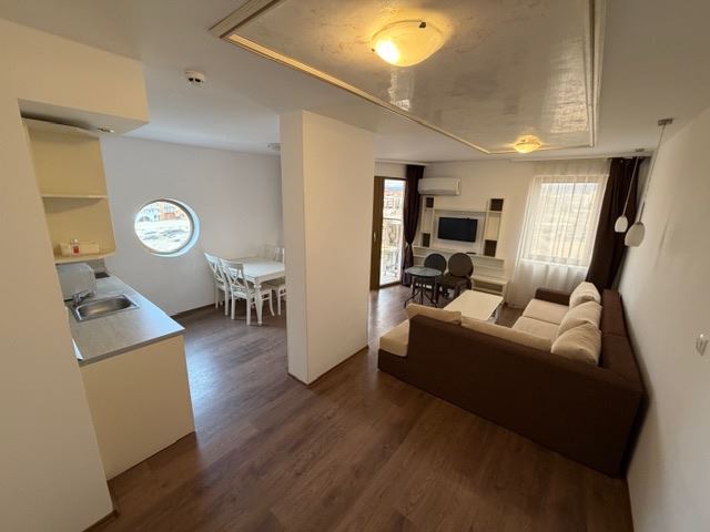 Квартира состоит из светлой и уютной гостиной, соединённой с современной кухонной зоной, спальни, ванной комнаты и балкона с прямым видом на море. Просторный интерьер и функциональная планировка позволяют удобно обставить жильё и рационально использовать каждую зону. С балкона открываются панорамные виды на море, превращающие каждый момент в особенное впечатление.