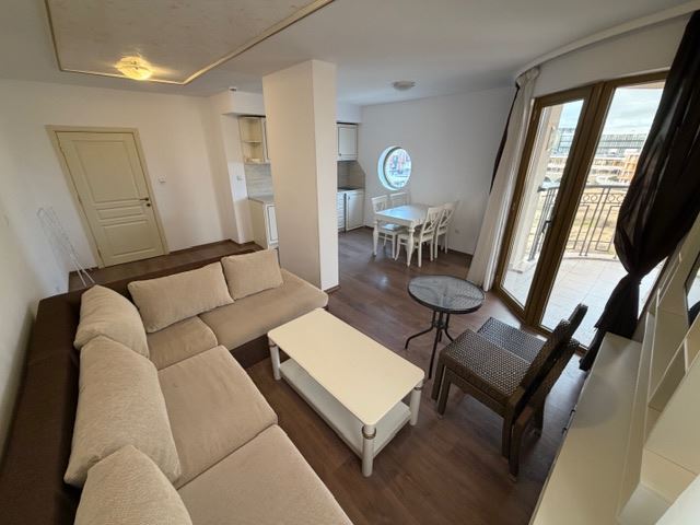 Представляем вашему вниманию роскошную двухкомнатную квартиру общей площадью 89,69 м², расположенную на пятом этаже из восьми в современном комплексе на первой линии в Солнечном Берегу. Квартира предлагает непрерывный вид на море, видимый из просторных помещений, создавая ощущение свободы и комфорта. Идеальна как для отпуска, так и для постоянного проживания, а также как инвестиция с высоким потенциалом сдачи в аренду, благодаря превосходному расположению и качеству комплекса.
