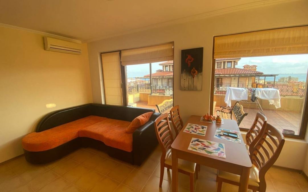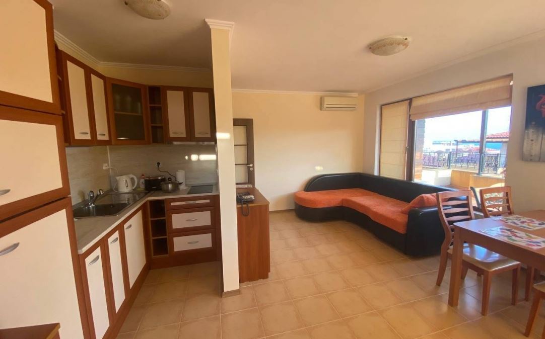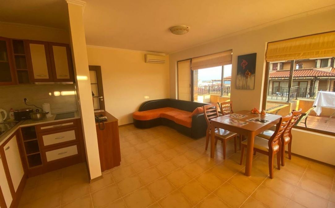 Просторная двухкомнатная квартира с видом на море предлагает роскошное жилое пространство в комфортабельном комплексе, расположенном в живописной части курорта Святой Влас. Песчаный пляж находится всего в 700 метрах от комплекса, что делает его идеальным для тех, кто ценит вид на море. Территория комплекса охраняется, ухожена и озеленена, что обеспечивает жильцам уютную атмосферу. В комплексе есть бассейн, зоны отдыха, детская площадка и парковка. Контроль доступа обеспечивает безопасность жильцов, а ухоженная территория создает приятную атмосферу для жизни.