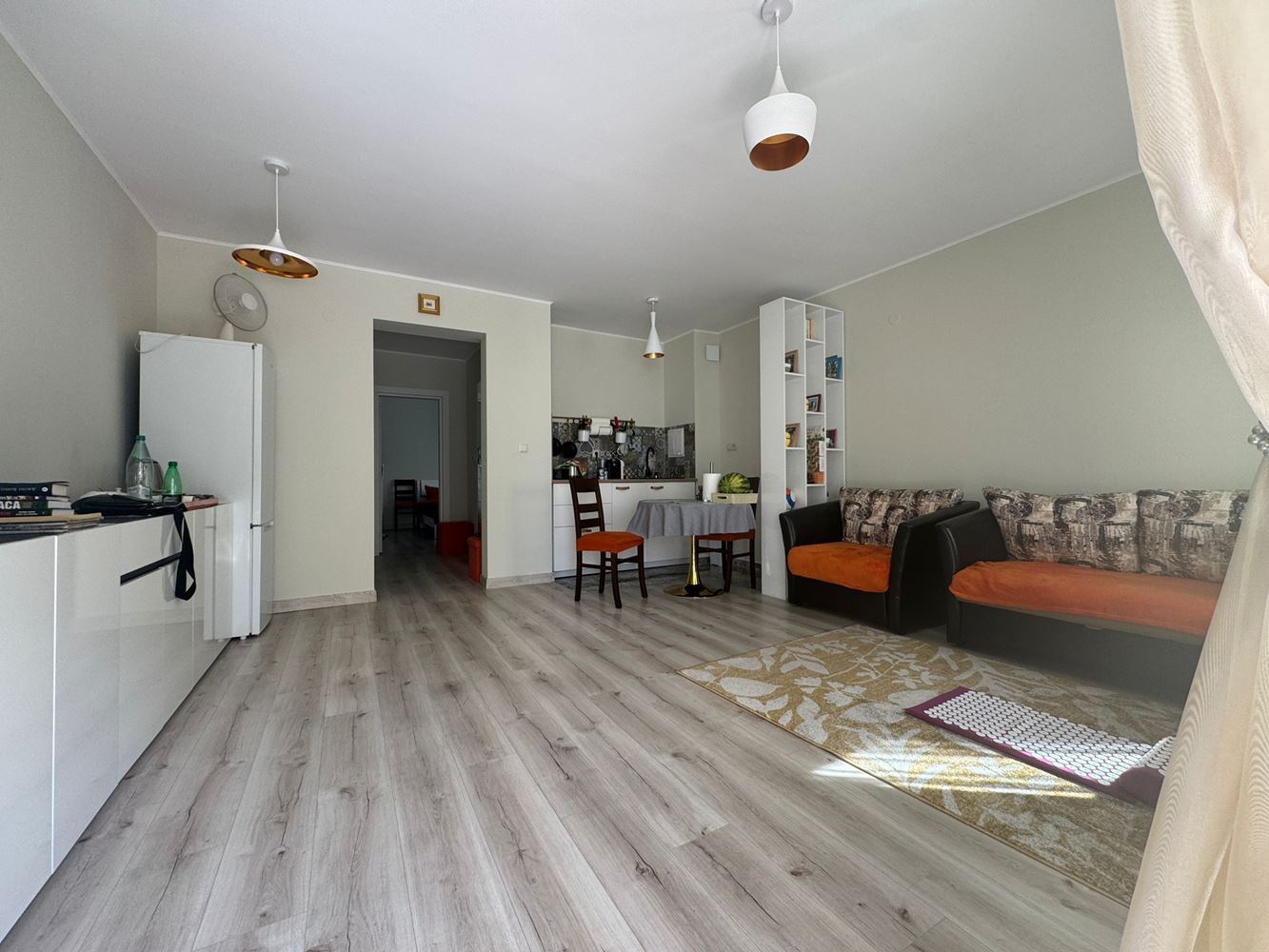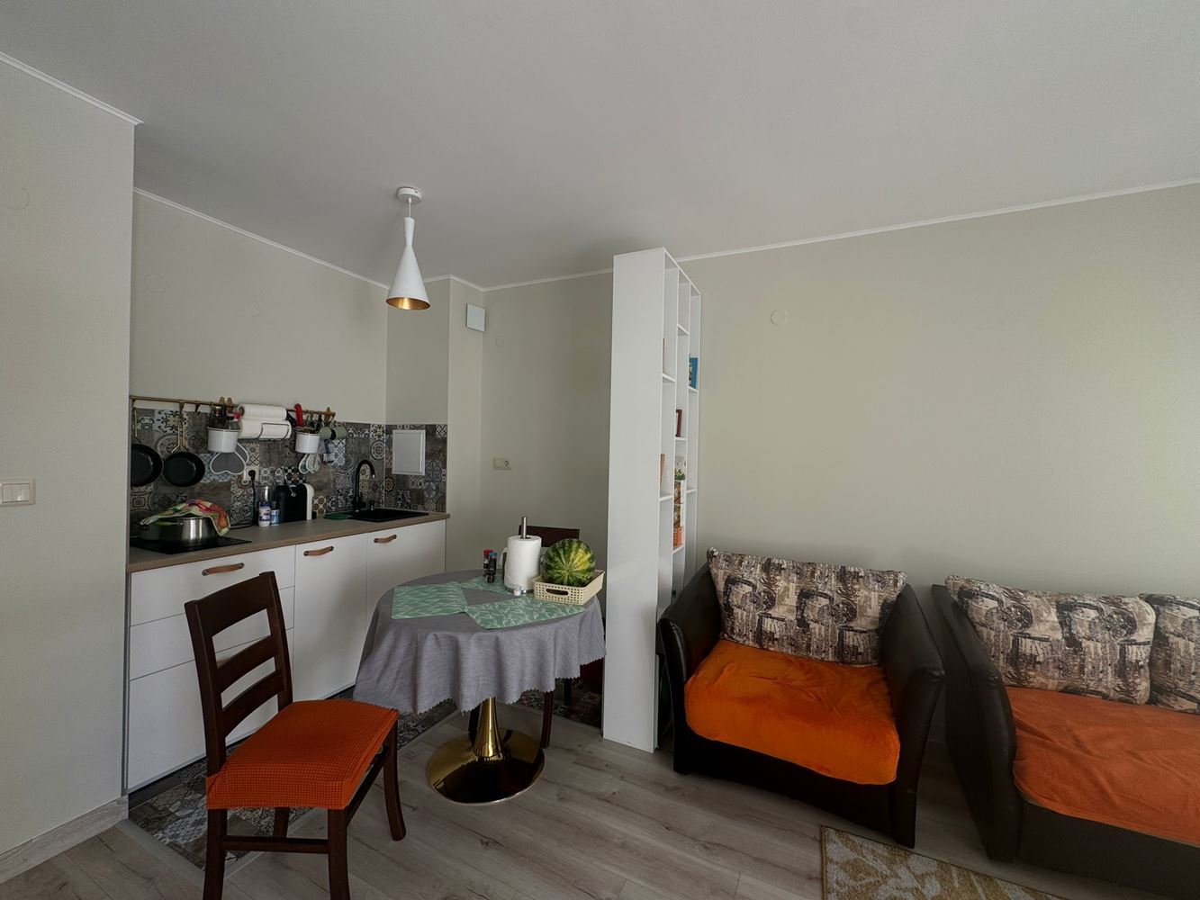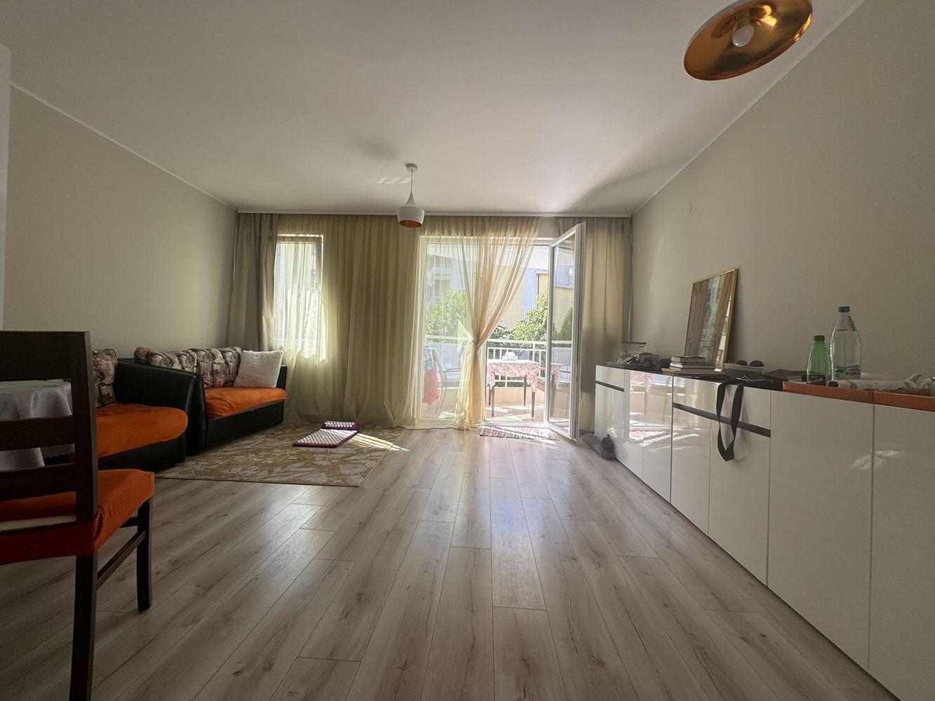 Квартира находится на втором этаже ухоженного четырёхэтажного здания и имеет общую площадь 55 м². Планировка включает просторную гостиную с кухонным уголком и обеденной зоной, уютную спальню, ванную комнату с туалетом и террасу. Жильё продаётся полностью меблированным и оборудованным – готово для немедленного заселения или сдачи в аренду. Кухня оснащена всей необходимой техникой, гостиная – комфортной мебелью, а спальня – качественной кроватью и шкафом. Интерьер выполнен в нейтральных, спокойных тонах, создающих ощущение уюта и простора. Терраса идеально подходит для утреннего кофе или вечернего отдыха на свежем воздухе.