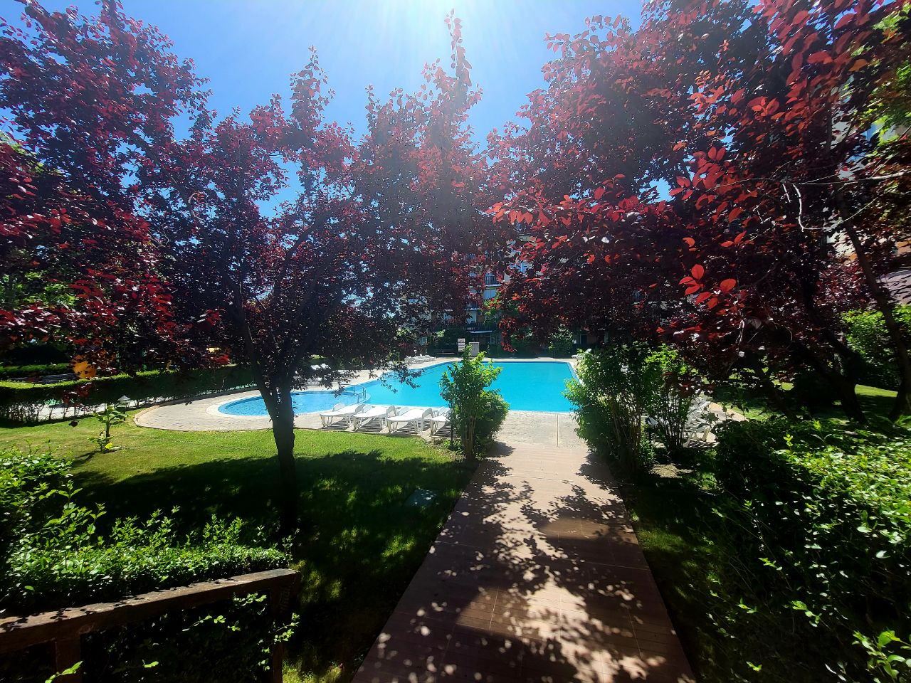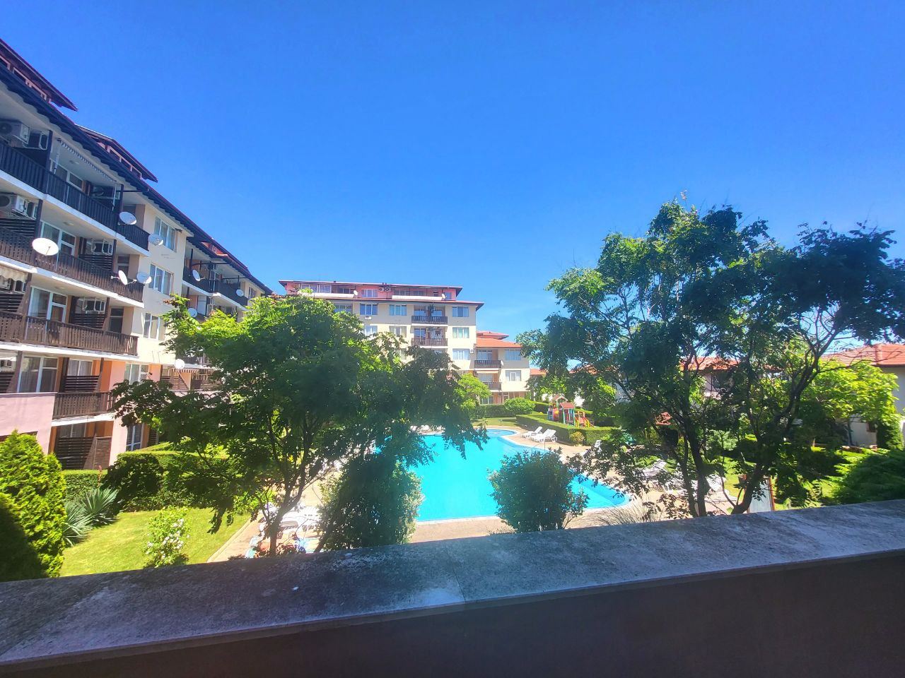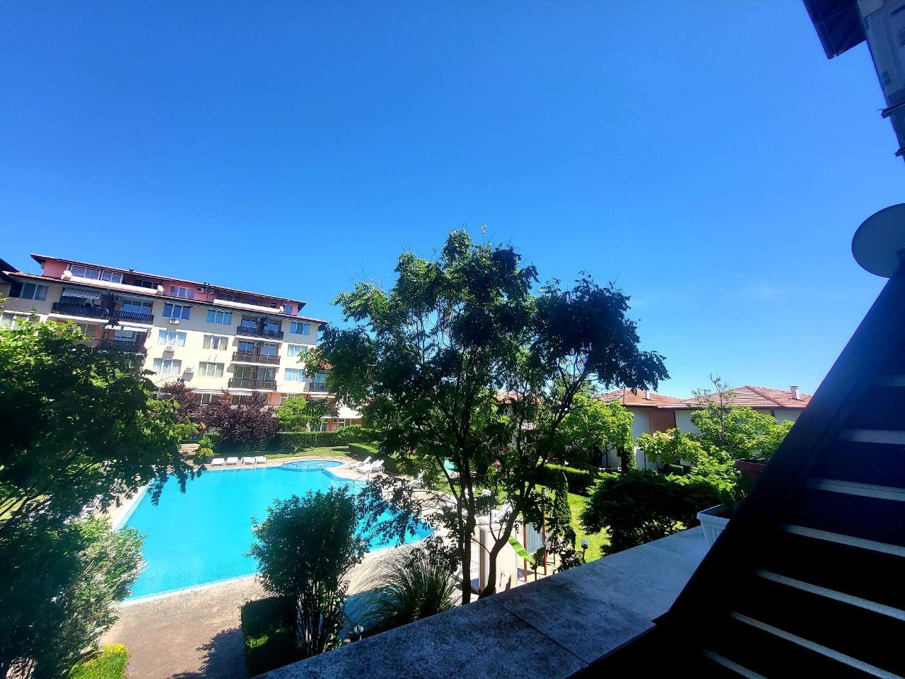 - Вид из окна:Бассейн