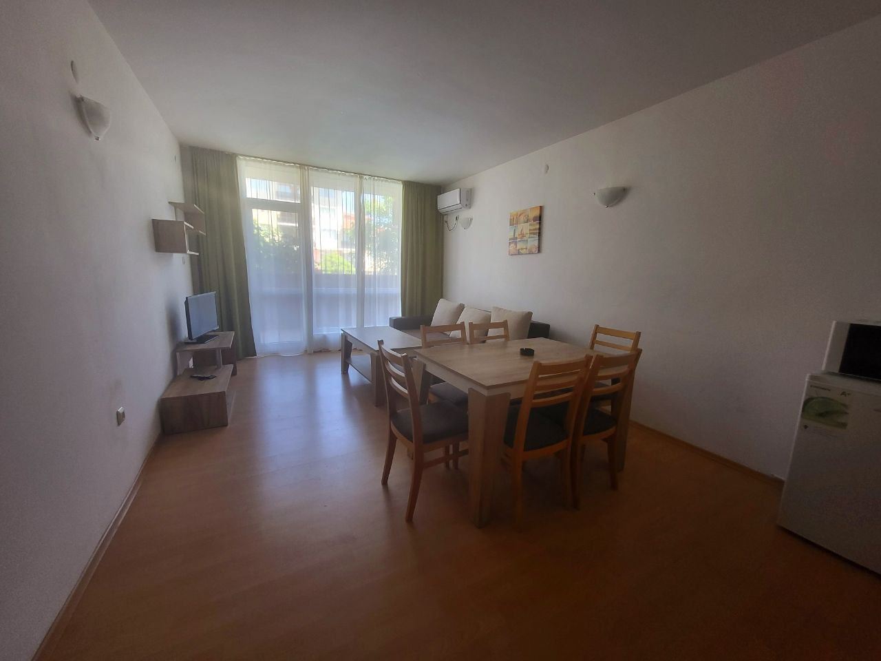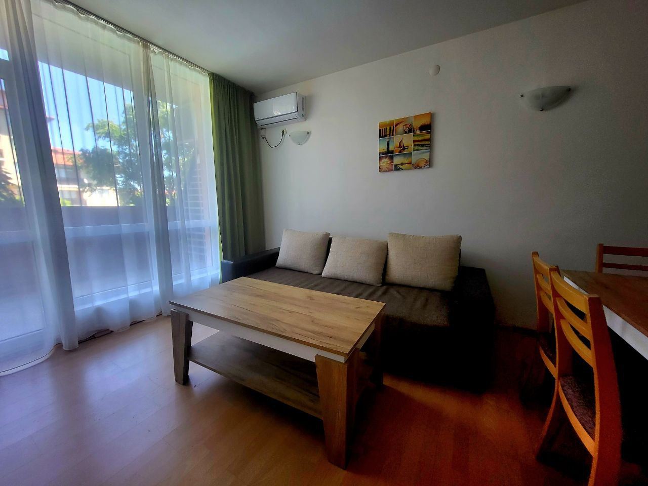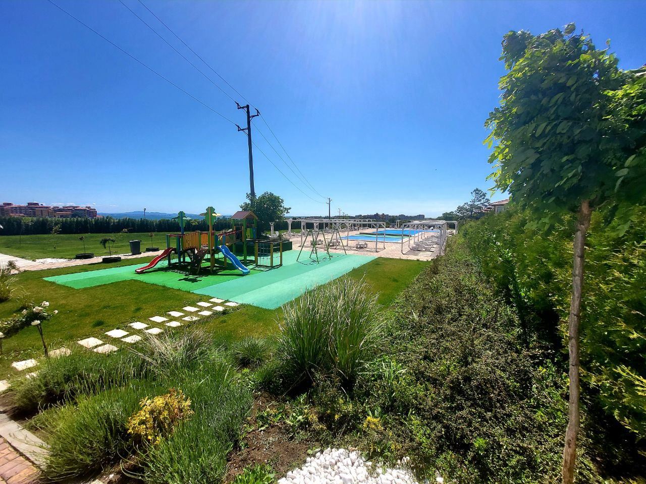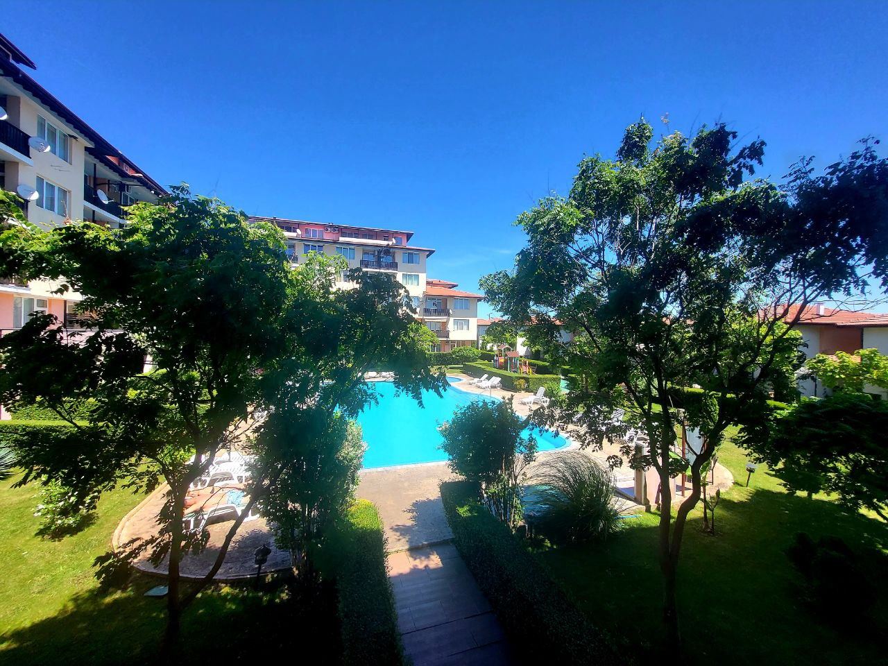 Продается просторная и очень уютная трехкомнатная квартира в курорте Ахелой. Квартира находится в комплексе на расстоянии 300 м от пляжа, в пяти минутах ходьбы от центра городка и всей инфраструктуры. Это тихое и живописное место, прекрасно подходящее для летнего отдыха. Возможно и круглогодичное проживание. Услуги и удобства в комплексе включают ресторан, большой плавательный бассейн, детский бассейн, джакузи, фитнес центр, салон красоты, бар при бассейне, ресторан европейской и болгарской кухни с панорамным видом на море и летней террасой на крыше, супермаркет, паркинг. Квартира площадью 99,38 м2 на втором этаже полностью меблирована, оборудована и готова для проживания. С видом на бассейн.