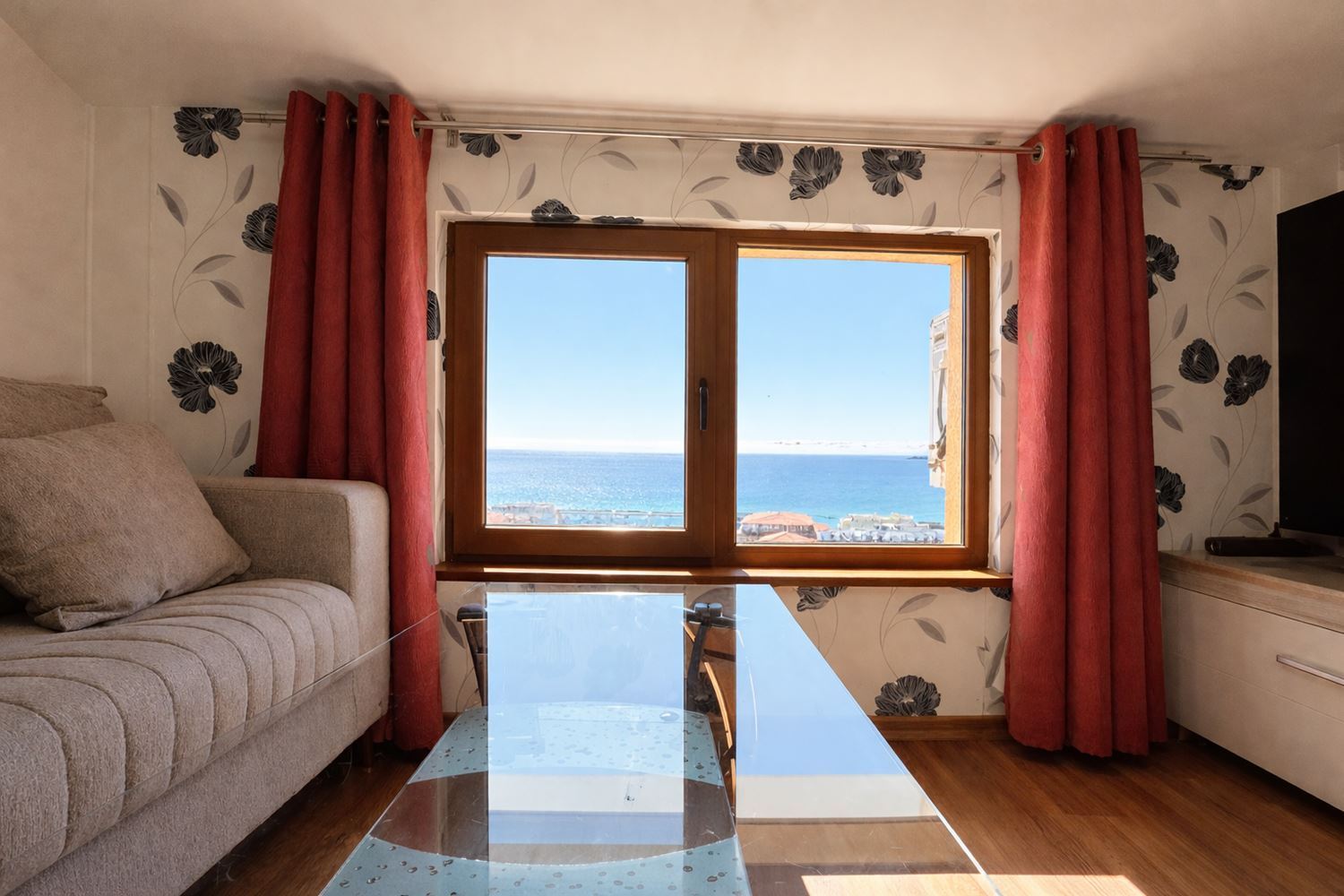 - Вид из окна:Море, Город