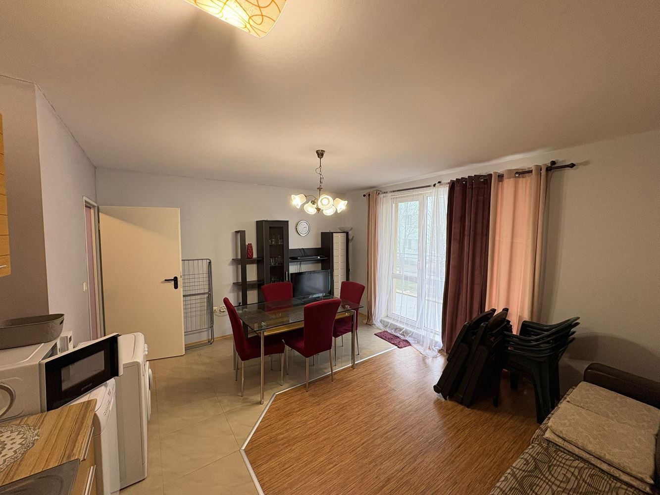 Квартира включает прихожую, кухню с гостиной, спальню, ванную с туалетом, практичное помещение для хранения, а также большую террасу, которая предлагает прекрасное место для отдыха, утреннего кофе или вечернего релакса. Юго-восточная ориентация обеспечивает обилие естественного света в течение всего дня, создавая уютную и гостеприимную атмосферу во всех помещениях.